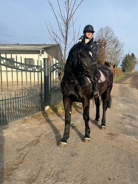 ANFRAGEN AUSSCHLIESSLICH TELEFONISCH: +49 175 1679777 Zum Verkauf steht eine superliebe fünfjährige Rappstute. Die Stute ist circa 1,64 m groß und überzeugt mit ihrem angenehmen Charakter sowie ihrer Lernbereitschaft. Sie ist geritten und bringt viel Potenzial für ihren weiteren Ausbildungsweg mit. Durch ihr ausgeglichenes Wesen ist sie angenehm im Umgang und macht täglich Freude bei der Arbeit. !!!SCHAUEN SIE SICH UNBEDINGT IHR VIDEO AN!!! Die Stute kann nach Terminvereinbarung in 53947 Nettersheim besichtigt und probegeritten werden. Um den Reittourismus zu vermeiden, berechnen wir für das Probereiten 40,00 €. Diese werden beim Kauf selbstverständlich verrechnet.