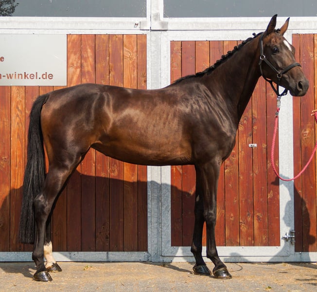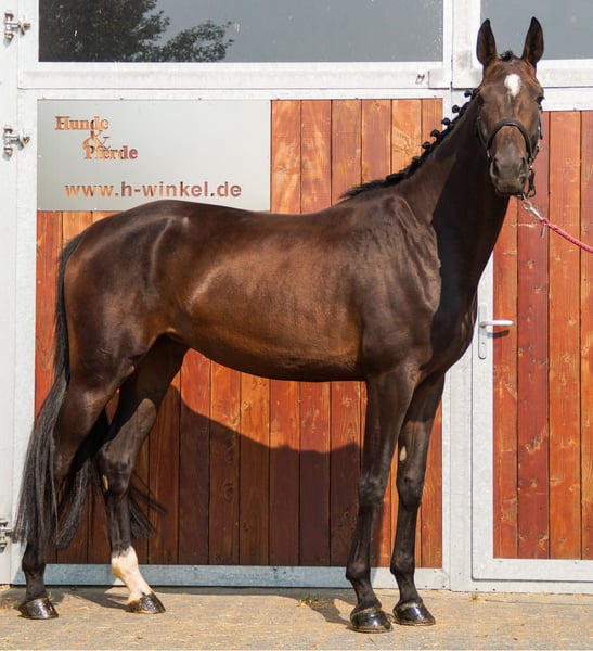 Name: Frieda Age: born 2021 Gender: Mare Height: 168 cm Breed: Rhineland Riding Horse Pedigree: For Gold x Stoiber SN by Sandro Hit Training level: ridden Athletic, elegant mare with a good basic training and elastic gaits. Frieda is also very well-behaved and easy to ride, and she has a top character. She has a hoof deformity on her front right hoof. The veterinary examination from May 25, with X-rays, is otherwise without findings. For more information, call 0176 62495567.