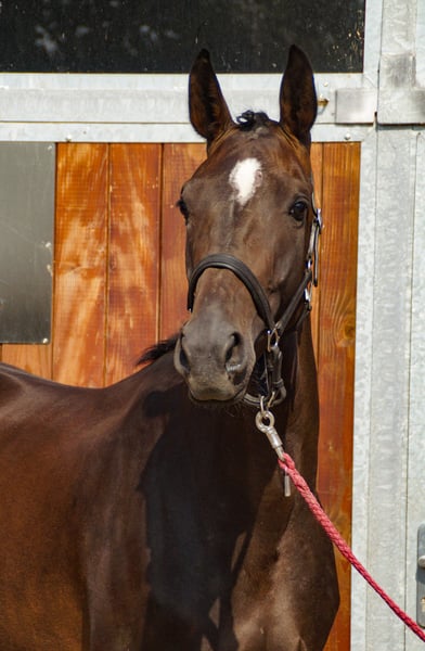 Naam: Frieda Leeftijd: geboren 2021 Geslacht: Merrie Schofthoogte: 168 cm Ras: Rijnlands Rijpaard Afstamming: For Gold x Stoiber SN van Sandro Hit Opleidingsniveau: Bereden Sportieve, elegante merrie met een goede basisopleiding en elastische gangen. Frieda is bovendien zeer braaf en licht te rijden en heeft een top karakter. Ze heeft rechtsvoor een bokhoef. De keuring van mei 25 met röntgenfoto's is verder zonder bevindingen. Voor meer informatie kunt u bellen naar 0176 62495567.