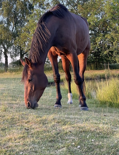 Lotta is een merrie, geboren in 2020, sired door Lord Clooney uit Captain Paul. Ze is bij ons op de boerderij geboren en opgegroeid. Ze is voorgesteld in de klasse Springen M (springen tot 1,20 m). Echter, de wedstrijdsfeer ligt haar niet zo. In het terrein gaat ze braaf en met enthousiasme. Thuis werkt ze rustig mee, maar kan ook wel eens een echte merrie zijn. Ik zoek voor Lotta iemand die haar de wereld op een consequente, maar vooral rustige en begripvolle manier verder wil leren kennen. Voor meer vragen, neem gerust contact op! Plaats gaat voor prijs!! Geen handelaren!