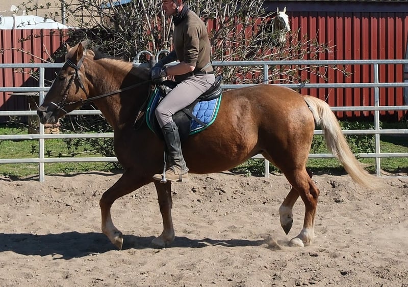 Bewegungsstarke,fleißige und sehr menschenbezogene kleine Warmblutstute. Sie ist sehr gut in allen Gangarten auf dem Platz und in der Halle geritten. Weiterhin ist sie problemlos allein im Gelände und Straßenverkehr geritten. Geländereiten,Western,Schulbetrieb Sicher im Straßenverkehr und Gelände. 6 Jahre, 153cm Bei Interesse bitte anrufen, keine Mail! Für eventuell auftretende Fehler in der Beschreibung gilt keine Gewähr! Tel.: 0173-3843407 Da es sich um ein lebendes Tier handelt, sind dies subjektive Eindrücke des Anbieters und keine zugesicherten Eigenschaften des Tieres! Ständig schöne Fahr-u.Freizeitpferdesowie neue Kutschen verschiedener Modelle preiswert im Angebot. Anschrift Stall: 99628 Buttstädt, Oberwendenstraße 39