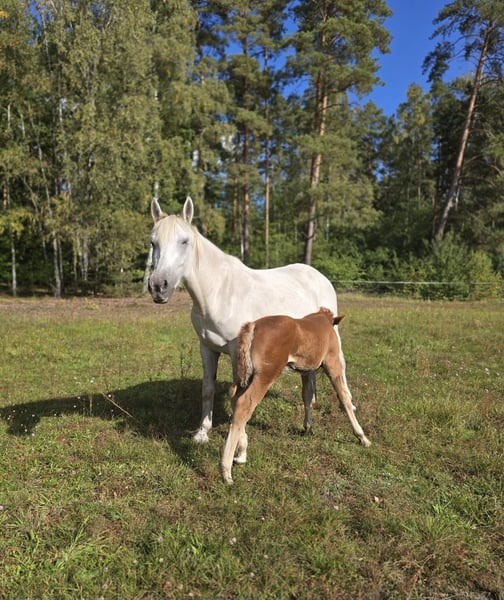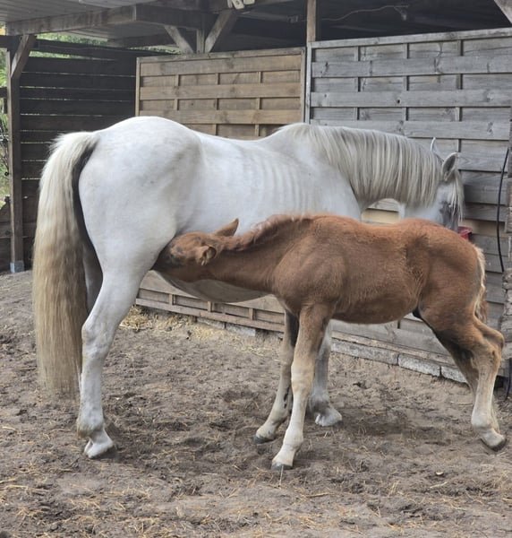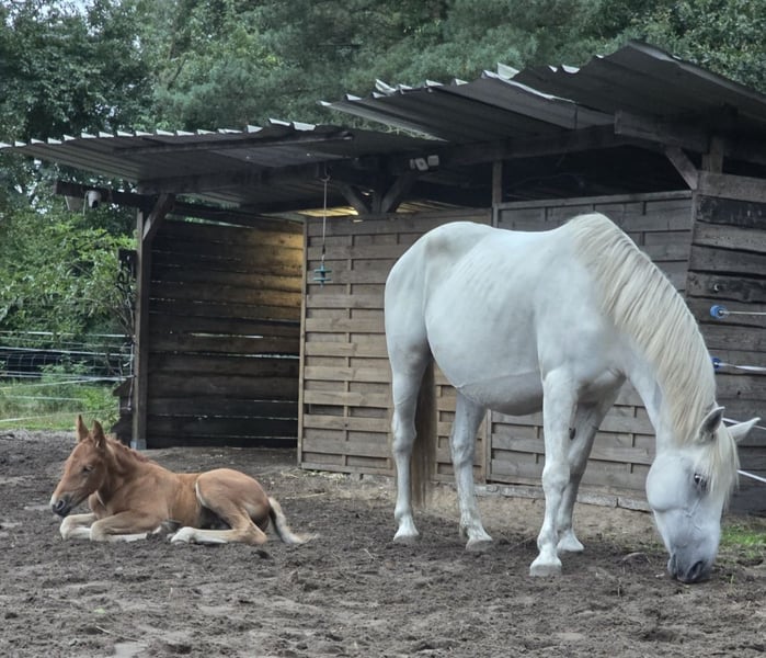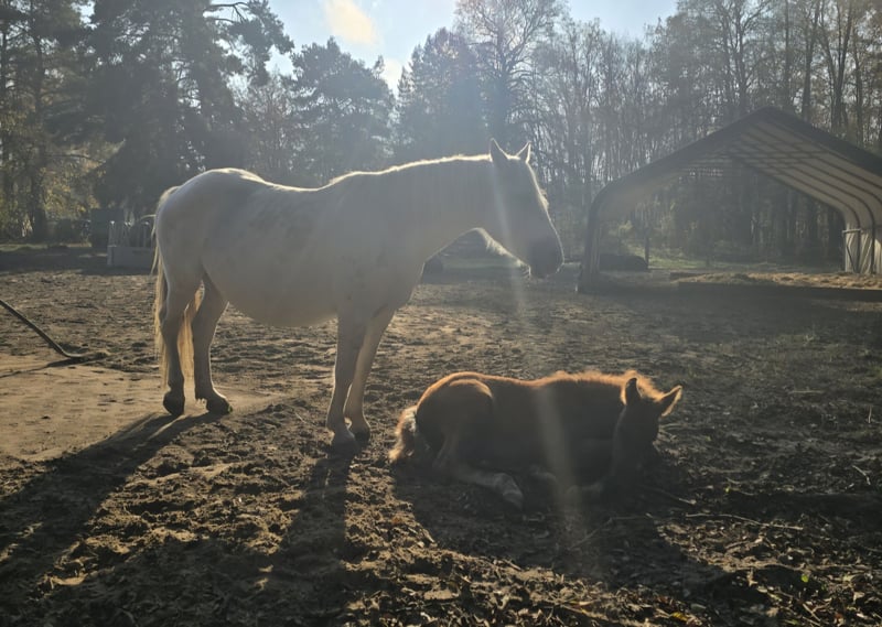 Aufgrund privater Umstände und Krankheit, verkaufe ich unsere liebevolle Warmblut-Stute mit Fohlen – ideal für Freizeit und Hobby...Fohlen zum selber ausbilden...Er ist schon kräftig und wird mal groß und stabil...ein kleiner Frecheachs mit viel Charme / steht schon mit den anderen in der Herde... Diese wunderschöne Schimmel-Stute wurde im Jahr 2019 geboren und überzeugt durch ihr freundliches Wesen und ihre Art. Sie ist sehr verschmust...mit einem Stockmaß von 155 cm bietet sie die perfekte Größe für vielseitigen Einsatz....Sie ist sehr Ranghoch in der Herde... Sie ist eine Warmblut-Dame, die sich bestens für den Freizeitbereich eignet. Durch ihr Fohlen muss sie wieder angeschoben werden...Ob Ausritte, Spaziergänge oder entspannte Tage im Gelände – sie ist angenehm im Umgang-sofern der Reiter Wissen hat...longieren klappt, am Putzplatz steht sie artig... Im Pass heißt sie Gucci, wir nennen sie liebevoll Maxi...Ihr Fohlen heißt Manoubi und ist am 10.09.2025 geboren... Maxi ist vollständig geimpft / Fohlen hatte Tetanus Serum und jetzt den Schutz der Mutter / und hat einen Ungarischen Pass... Beide sind schon Hänger gefahren...Manoubi ist Halfterführig und kennt das Fohlen ABC...steht auch schon am Putzplatz... Bei Interesse oder für weitere Informationen stehe ich gerne zur Verfügung unter 017684396957...Videos auf Anfrage Kennen Offenstall und Box ! Ich möchte Sie in gute Hände Wissen! Ein Kennenlernen lohnt sich! ● Preis 1.500€ ● KEINE RATENZAHLUNG! ● Zubehör gibt es dazu für beide / Halfter+Stricke, Putzzeug, Trense und Decke