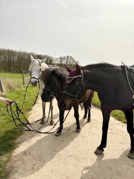 Met pijn in mijn hart geef ik mijn merrie „Dáma“ weg. Ze is 6 jaar oud en wordt in augustus 7, heeft geen afstamming en een stokmaat van ongeveer 1,60 m. Dáma is bijna vier jaar in mijn bezit, maar we vinden gewoon geen klik. Ik doe haar momenteel weg als bijzitter, omdat ze niet regelmatig is gereden. Vooral heb ik met haar grondwerk gedaan (Horsemanship, doppellonge, schriktraining, etc.). Ze kent het gewicht van een ruiter en is bij ons ook al eens in de buitenlucht in een groep geweest. Ze is geen beginnerspaard en heeft een sterk karakter. Voor dit paard heb je veel tijd en geduld nodig, maar ik geloof dat als ze haar juiste persoon vindt, ze door het vuur gaat voor haar. Ze heeft een vaste vertrouwenspersoon nodig waarop ze zich kan richten. Ze test graag grenzen uit en is vaak erg onzeker, daarom heeft ze iemand nodig die haar veiligheid biedt. Momenteel staat ze in 35327 en wordt getraind. In de kudde toont ze zich ranghoog. Ze is regelmatig gevaccineerd, ontwormd en door de hoefsmid bekeken. Ze heeft voor- en achterhoeven beslagen. Haar tanden zijn voor het laatst in februari 2025 gecontroleerd. Het is voor mij erg belangrijk dat Dáma haar mensen vindt, daarom gaat hier plaats boven prijs!
