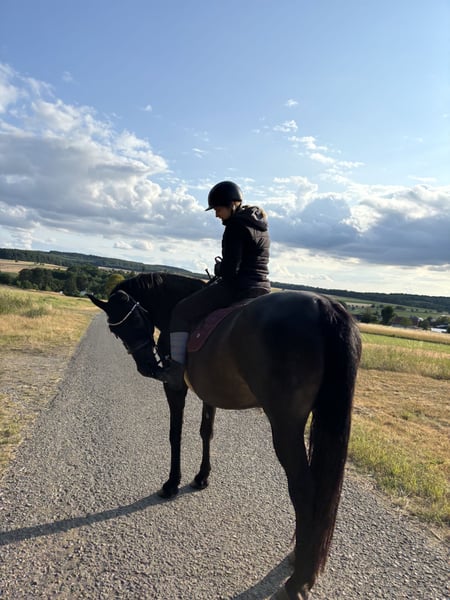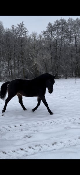 Con mucho pesar, tengo que poner en venta a mi yegua "Dáma". Tiene 6 años y cumplirá 7 en agosto. No tiene pedigree y mide aproximadamente 1,60 m de alzada. Dáma ha estado en mi propiedad durante casi cuatro años, pero simplemente no hemos logrado conectar. Actualmente, la ofrezco como yegua de compañía, ya que no ha sido trabajada de manera regular. Principalmente, se ha trabajado con ella en doma natural, doble cuerda y entrenamiento en situaciones de miedo. Está familiarizada con el peso del jinete y ha estado en salidas en grupo en el campo. No es una yegua para principiantes y tiene un carácter muy fuerte. Para ella, se requiere mucho tiempo y paciencia, pero creo que si encuentra a su persona adecuada, será leal y confiable en las buenas y en las malas. Necesita una persona de referencia estable, en quien pueda confiar y centrarse. Le gusta probar límites y, a menudo, es muy insegura, por lo que necesita alguien que le proporcione seguridad. Actualmente, se encuentra en 35327 y está en entrenamiento. En el grupo, muestra una posición dominante. Ha sido vacunada, desparasitada y presentada al herrador de forma regular. Tiene los cascos frontales recortados. Sus dientes fueron revisados por última vez en febrero de 2025. Para mí, lo más importante es que Dáma encuentre a su persona, por lo que aquí prima el espacio sobre el precio.