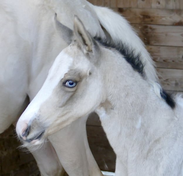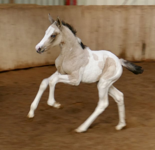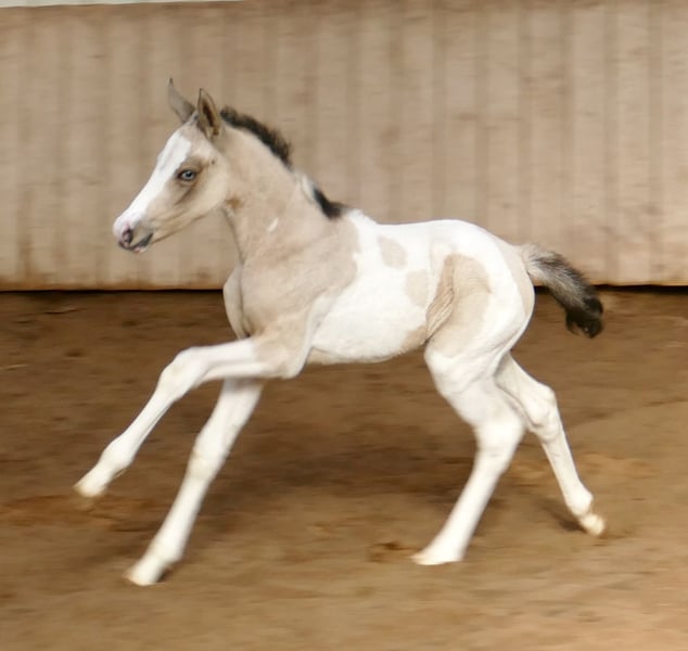 Ice Blue A – ein echter Eycatcher 💙✨ Dieses traumhafte Stutfohlen in edlem Buckskintobiano zieht alle Blicke auf sich. Mit ihrer außergewöhnlichen Farbe, ihrem korrekten Exterieur und ihrem sportlichen Auftreten begeistert sie auf ganzer Linie. Abstammend von Insider x Michelangelo bringt Ice Blue A nicht nur Schönheit, sondern auch jede Menge Qualität für den Sport mit. Ihre Linien machen sie hochinteressant für Springen und Vielseitigkeit – hier wächst etwas ganz Besonderes heran. Ein Fohlen mit Ausstrahlung, Bewegung und Perspektive – einfach zum Verlieben 💖