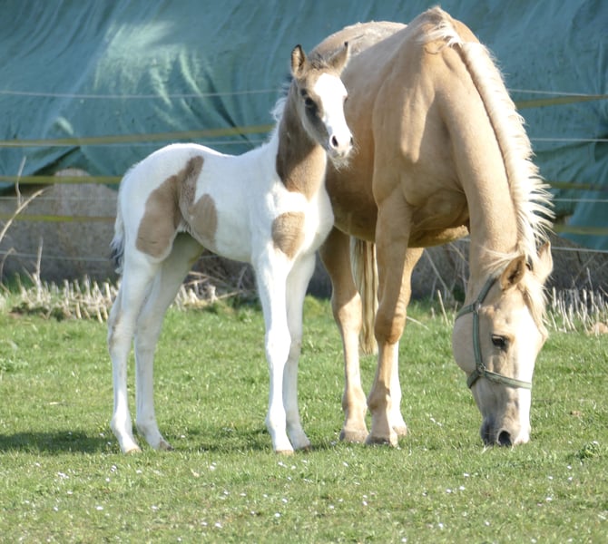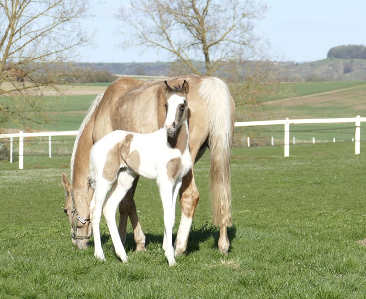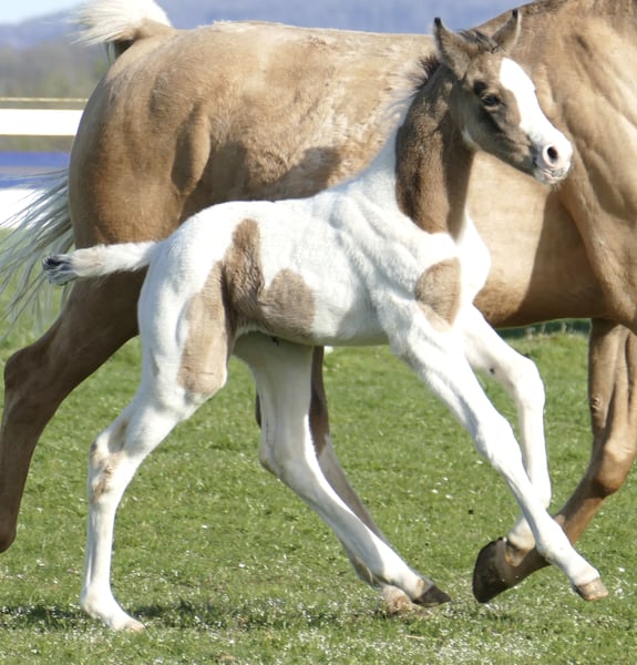 Cadira Morninglight A ✨ With Cadira Morninglight A, an extraordinary filly is growing up, combining performance, pedigree, and exceptional color genetics in a striking way. Bred from the proven Cadiz A (Cordess–Clinton x Heartbreaker x Shakespeare x Potsdam NRW) and the Morning Star by Magic Memphis x Rebel Z III, she merges cutting-edge show jumping genetics with internationally renowned performance lines. Her sire carries valuable lines from the Clinton and Heartbreaker dynasties, which have stood for talent, technique, and attitude in the show ring for decades. On her dam’s side, she has a direct connection to a special chapter in show jumping history through Rebel Z III: he is the full brother of the legendary Ratina Z, one of the most successful international show jumping champions. But it’s not only her pedigree that makes Cadira special: in the rare Buckskin Tobiano color, she combines two rare color genes — a true eye-catcher with rarity value. Elegance, expression, and presence are already written into her face. Cadira Morninglight A impresses as a foal with her harmonious conformation, elastic movements, and natural charisma. Whether for ambitious sport in jumping or eventing, or future breeding prospects — this filly embodies everything modern horse breeding stands for: performance bloodlines, exclusivity, and potential for the future. A name like a promise — Cadira Morninglight A: Born in the light, made for great tasks. 🌅🐎