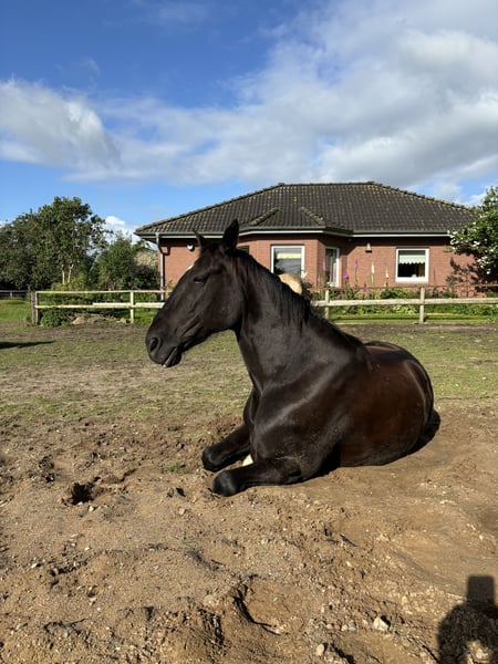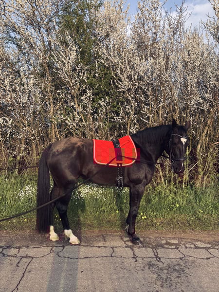Schweren Herzens muss ich mich aus persönlichen Gründen von meinem Wallach Amari trennen. Ich suche für ihn nun ein tolles neues Zuhause, in dem er alles bekommt, was er braucht. Mir ist wichtig, dass sein neuer Besitzer immer pro Pferd denkt. Amari ist ein dänischer Traber und war auch einige Zeit Rennen gelaufen. Bei mir ist er nun seit Anfang 2023 und zum Freizeitpferd umgeschult geworden. Er möchte gerne gefördert werden und arbeitet immer toll mit. Wir machen mit ihm leichte Dressur, Equikinetic, Bodenarbeit, Gelassenheitstrainig, Stangenarbeit, Spaziergänge und Ausritte. In der Halle ist Amari konzentrierter und einfach zu händeln, draußen ist er eher umweltorientiert und benötigt eine ruhige Bezugsperson, wenn er dort mal unruhig wird. Daher gebe ich ihn auch NICHT als Anfängerpferd ab. In der Herde ist er rangmittig bis ranghoch und leider nicht ganz einfach. Mit gleichrangigen oder ranghöheren funktioniert es besser als mit rangniedrigen, da er diese vom Futter vertreiben will. Er kennt offenstall und boxenhaltung. Kommt auch alleine im Stall gut zurecht. Er orientiert sich wenig an anderen Pferden. Schön wäre ein zuhause, dass nicht all zu weit weg ist, damit ich ihn mal besuchen kommen kann. Melde dich gerne, wenn ernsthaftes Interesse besteht, um Amari kennen zu lernen. Ps.: das letzte Bild zeigt Amari, wo ich ihn grade gekauft habe.