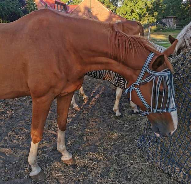 Hallo Ich muß mich leider aus gesundheitlichen Gründen von meinem lieben, Spanier Mix Wallsch trennen. Diese Zeilen fallen mir überhaupt nicht leicht, aber leider geht es nicht anders. Ich werde ihm einfach nicht mehr gerecht. Er braucht definitiv -eine sichere Person (vorzugsweise eine Frau) bei Männern braucht er etwas länger, aber mit meinem Partner kommt er super zurecht. - er ist kein Anfängerpferd, auch wenn er mal Schulpferd war, das will er definitiv nicht mehr -kein Kinder Pferd, da er sehr viel Go und Temperament hat -kein Schulbetrieb und definitiv keine Händler, Schlachter oder dergleichen -der Reiter sollte ihm Sicherheit geben können, denn Unsicherheit spiegelt er sonst wieder. Er ist ein sehr sensibler Typ, er kommt ursprünglich wohl aus Spanien und hat da nicht so gute Erfahrungen gemacht Er lässt sich fein longieren und Reiten auf Stimme Ich habe ihn auch Gebisslos geritten, allerdingss stand er jetzt etwas längr und muss Muskulär wieder aufgebaut werden. Er kann Springen, ging früher im Schulbetrieb, was er überhaupt nicht mehr will (den Schulbetrieb) er fing das terten und beissen an, dann kam er zu uns und dieses Verhalten hat er nie wieder gezeigt. Springen tut er gerne, braucht aber wieder etwas Übung, wie hoch er springen kann weiß ich nicht, ich bin nur über kleine Hindernisse mit ihm gesprungen. Ich wollte mit ihm in Bereich Geländespringen was machen, hat sich aber leider nicht ergeben. Er ging wohl auch mal auf Distanzritte, er hat sehr viel Go und Spaß am Rasen. Er darf in keine Box auch nicht Nachts, er fängt das Weben dann an und ist mehr als unglücklich. Er steht bei uns 24/7 draussen in einer kleinen Truppe, mit frei zugänglichem Heu und ist damit sehr zufrieden. Er war bei uns nie krank, frisst alles, kann lachen, lernt schnell und will dies auch, er will unbedingt was tun, deshalb wird er nur verkauft, wil ich sehe das ihm das fehlt. Ich werde in den nächsten Jahren nicht mehr reiten können, dazu wenn persönlich mehr. Im Sommer oder auch wenn es extrem windig ist, braucht er Fliegenfransen, da ist er etwas empfindlicher (Masken zieht er sich aus, da ist er richtig gut drinne), wobei es dieses Jahr echt ging. Ich bin dabei ihn komplett von der Winterdecke zu bekommen, aber wenn es zu extrem wird, braucht er noch eine, wird aber von jahr zu jahr besser. Er ist ca 162 cm müsste ich nochmal nachmessen Geb Datum 26.09.2011 Es soll Araber ihn ihm drinne sein. Er hat einen Spanishen Pass. Wallach und ein Herz von Pferd Er braucht Zeit um in sein neues zuHause anzukommen und natürlich um Vertrauen aufzubauen, was aber bei den meisten Pferden so ist. Ein Probereiten ist nicht möglich, da nicht bemuskelt, auch kein Probe sitzen. Wenn man ihn hat tut er alles für einen. Er kommt bei mir auf Zuruf. Hat keine Unverträglichkeiten und der Schmied kommt derzeit alle 6 Wochen, steht bei uns Barhuf, sollte aber je nach Belastung und Ausritten vorne Beschlagen werden oder Hufschuhe tragen. KEIN NOT VERKAUF Das war erstmal das wichtigste. Zubehör kann extra erworben werden bei Bedarf. Der Preis ist Verhandelbar. Es gilt Platz vor Preis, verschenkt wird er dennoch nicht. Kein zur Verfügung und auch kein Ratenkauf.