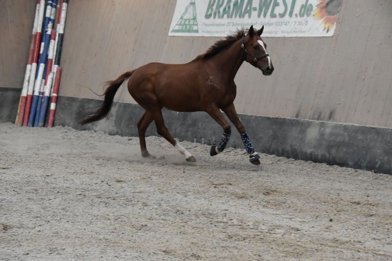 **Verkaufsanzeige: Traumhafter Vollblut-Wallach zu verkaufen** Wir suchen ein neues Zuhause für unseren wunderschönen Vollblut-Wallach! **Merkmale:** - **Rasse:** Vollblut - **Geschlecht:** Wallach - **Geburtsjahr:** 2021 - **Farbe:** Fuchs - **Stockmaß:** 164 cm - **Eignung:** Dressur Dieser charmante Wallach überzeugt nicht nur durch seine ansprechende Farbe und sein elegantes Erscheinungsbild, sondern auch durch sein freundliches Wesen und seine Lernbereitschaft. Er ist bestens geeignet für ambitionierte Reiter, die Freude an der Dressur haben und gemeinsam mit ihm weiter wachsen möchten. Er hat bereits erste Erfahrungen in der Dressur gesammelt und zeigt großes Potenzial für weitere Fortschritte. Mit seinem ausgeglichenen Temperament und seiner guten Rittigkeit ist er sowohl für den Freizeit- als auch für den kleinen Turniersport geeignet. Der Wallach ist brav im Umgang, gut erzogen und kennt die Grundlagen der Bodenarbeit. Er ist geimpft, entwurmt und besitzt einen aktuellen Gesundheitscheck. Bei Interesse oder weiteren Fragen freuen wir uns über Ihre Nachricht! Besuchen Sie uns gerne, um diesen tollen Wallach persönlich kennenzulernen. Wir freuen uns auf Ihre Anfrage!