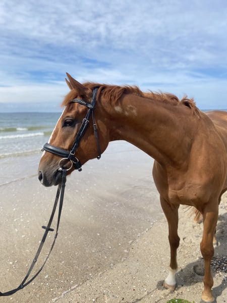Wir verkaufen unseren 6-jährigen Vollblüter Wallach, abstammend von George Vancouver x Bidart. Er ist bis vierjährig im Besitz von The Dutch Master Stables Rennen gelaufen und wurde anschließend von Libertys Home übernommen, wo wir ihn für unseren Schulbetrieb erworben haben. Im letzten Jahr habe ich ihn von meinen Eltern übernommen, um ihn Dressur- und Springmäßig weiter zu fördern. Da mir momentan jedoch die Zeit fehlt, steht er nun zum Verkauf. Er ist barhuf, wird regelmäßig dem Hufschmied vorgestellt, ist geimpft und entwurmt. Beim Verladen zeigt er sich brav und unkompliziert. Er kennt das Ausreiten sowohl allein als auch in der Gruppe und zeigt sich dabei aufmerksam und unkompliziert. Springen, sowie das Arbeiten auf dem Vielseitigkeitsplatz sind ihm ebenfalls vertraut. Ein absoluter Allrounder – sowohl für den Freizeit- als auch für den Sportbereich interessant. Bei Interesse gerne melden unter +49 179 3722430
