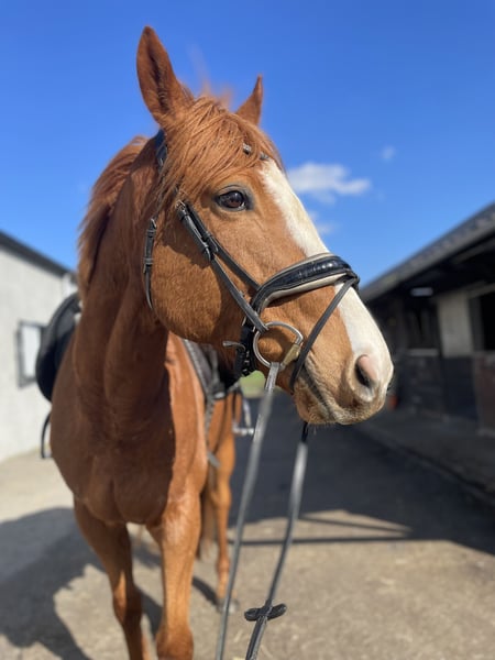 For sale: Nearly 8-year-old Thoroughbred gelding – a lovely recreational horse with a dressage foundation With a heavy heart, we are offering Bonnie, the 8-year-old gelding, for sale due to lack of time and motivation. He has been in his owner’s possession since the age of 3 and has never raced, which means he has an honest and calm temperament without a racing background. He performs neatly at B-level dressage and is a pleasure to ride—light in the hand and eager to work. He knows the basics well and is an enjoyable horse for recreational riding and further dressage training. In handling, he is the sweetest horse in the stable. He can be trusted even with the smallest children. In short, a super honest horse. In summer, he is well-behaved and can be ridden by less experienced riders. During winter, he can be a bit more lively, making him better suited for an experienced rider. He does not jump under saddle, but he has experience with free jumping. He previously had a slight conformational stance, but this has been nicely corrected through proper trimming and currently does not cause any issues in riding. Additionally, he is: - Gentle in handling - Regularly seen by the farrier and veterinarian - Social within the herd but somewhat dominant We are looking for a good, suitable home where he can continue to enjoy and work. 📍 Location: Geluwe, Belgium 📩 More info and videos available upon request 💰 Asking price: €5,000 (negotiable for the right home!)