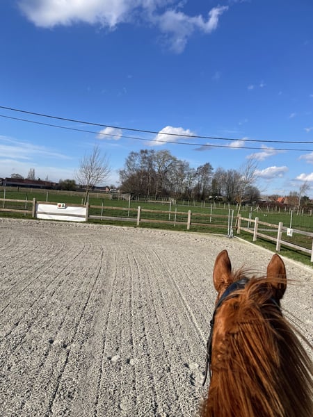 Te koop: knappe 8-jarige volbloed ruin – fijn recreatiepaard met dressuurbasis Met veel pijn in het hart wordt de 8-jarige ruin Bonnie te koop aangeboden wegens tijdsgebrek en gebrek aan motivatie. Hij is sinds zijn 3 jaar in het bezit van de eigenares en heeft nooit gekoerst, waardoor hij een eerlijke en rustige basis heeft zonder “renverleden”. Hij loopt netjes op B-niveau dressuur en is fijn te rijden, licht in de hand en werkwillig. Hij kent de basis goed en is een aangenaam paard voor recreatief rijden en verdere opleiding in dressuur. In omgang is dit het allerliefste paard op stal. Kan je het kleinste kindje zelf bij vertrouwen. Kort gezegd een super eerlijk paard. In de zomer is hij braaf en kan hij ook door minder ervaren ruiters gereden worden. In de winter kan hij wat frisser zijn, waardoor hij dan beter past bij een ruiter met ervaring. Springen doet hij niet onder het zadel, maar hij heeft wel ervaring met vrijspringen. Hij heeft een lichte Franse stand gehad, maar dit is door correct bekappen mooi bijgewerkt en vormt momenteel geen probleem in het gebruik. Verder is hij: • braaf in omgang • netjes bij hoefsmid en dierenarts • sociaal in de kudde maar wel dominant Wij zoeken een goede, passende thuis waar hij verder kan genieten en werken. 📍 Regio: Geluwe, België 📩 Meer info en video’s op aanvraag 💰 Richtprijs: €5.000 (eventueel bespreekbaar indien heel goed thuisje!)