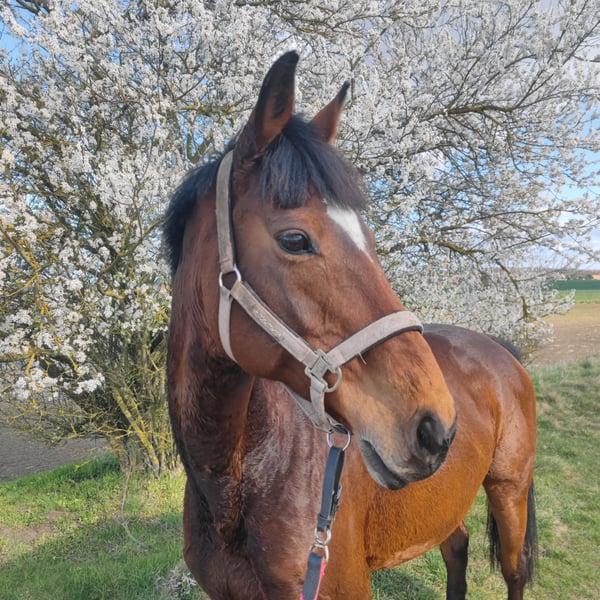 Schweren Herzens biete ich aus persönlichen Gründen, meine Stute Mary Lou zum Verkauf an. Mary ist eine 16 jährige , braune Vollblut Stute mit einem Stockmaß von 1,65. Im Umgang, beim Reiten auf Turnier oder Gelände sowie bei der Bodenarbeit ,als auch beim Putzen, ist sie ein absolutes Vertrauenspferd und für jeden Spaß zu haben. Hunde sind kein Problem, von groß bis klein, ob im Stall oder beim Reiten. Turniererfahrung bis Klasse A, im Springen, bringt sie auch mit. Sollte Mary dein Interesse geweckt haben, schreib doch gern eine persönliche Nachricht und vereinbare einen Termin um sie zu besichtigen und um noch mehr über ihr Wesen zu erfahren.