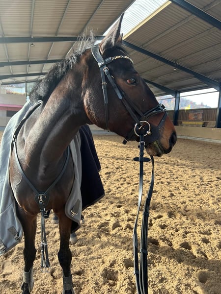 Vielseitige Vollblutstute sucht neues Zuhause Auri ist eine im Jahr 2018 geborene Vollblutstute mit einem Stockmaß von ca. 163 cm, die sich als echter Allrounder präsentiert. Sie überzeugt durch ihre Rittigkeit, ihren Fleiß und ihre Vielseitigkeit in unterschiedlichen Bereichen. Sie geht unkompliziert ins Gelände, sowohl alleine als auch in der Gruppe. Im Springen ist Auri bis E/A*-Parcours ausgebildet und zeigt dabei Freude und Übersicht. In der Dressur ist sie sicher auf A-Niveau, beherrscht Seitengänge sowie fliegende Wechsel und lässt sich fein und korrekt reiten. Bisher ist sie auf Grund geringer Turnierambitionen nur auf WBO Turnieren/ Reitertagen vorgestellt worden und konnte sich hier im Springen bis 90 cm platzieren. Auri eignet sich ideal für Reiterinnen oder Reiter, die ein vielseitiges, sportliches Pferd für Freizeit und Turnier suchen. Sie ist im Umgang und beim Reiten brav, jedoch nicht für Anfänger geeignet. Sie steht in einer kleinen gemischten Herde und soll in ihrem neuen Zuhause auch ausreichend Koppelgang haben. Pferd koppt, hat damit jedoch keine weiteren Einschränkungen.