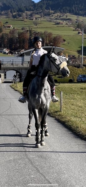 Schweren Herzens verkaufe ich meine 2017 geboren Schimmelstute Grace. Momentan ist sie ca 1.60cm gross (hinten stark überbaut), und noch im Wachstum. Im Mai wird Grace 5 Jahre alt. Da sie Schnell & wendig ist und gas geben & Springen ihre 2 Lieblingssachen sind eignet sie sich perfekt für die Vielseitigkeit oder auch Springen. Sie kennt Halle, Aussenplatz, Laufband, Gelände, Hufschmied, Tierarzt/Zahnarzt, Transporter, alles mögliche an Tieren -> Hunde, Katzen, Kühe, Ziegen, Lamas/Alpakas etc. Sie ist verkehrssicher und läuft entspannt neben schnell vorbeifahrenden Zügen (Strasse 2m neben gleis, keine wand). Autos, Lastwagen, Brücken, Tunnel, Baustellen etc sind auch kein Problem für sie. Sie geht alleine sowohl mit der Gruppe alle 3 Gangarten im Gelände, auch im dunkeln. Auf dem Platz oder in der Halle stören sie andere Pferde oder Musik nicht. Longieren kennt sie in jeder form. Freiarbeit macht ihr auch viel spaß. Grace ist ein sehr Charakterstarkes Pferd mit viel Temperament. Kinder und auch Kleinkinder sind sie geritten, jedoch braucht sie einen Konsequenten Reiter mit Jungpferde-Erfahrung, erst recht in diesem Alter. Sie möchte jeden Tag gefördert werden, daher kann ich sie mir nicht als Freizeitpferd vorstellen. Unverbraucht und noch nicht an Tunieren vorgestellt. Aktuelle Parcours Videos können gemacht werden. Ich suche ein 5* zuhause für Grace. Weide und viel Bewegung sind ihr wichtig. Preis der qualität entsprechend! Hier gilt PLATZ VOR PREIS. Grace kann jederzeit besichtigt werden. Um den Reit-Tourismus aus dem Weg zu gehen nehmen wir 20€ für einen Proberitt, der beim kauf natürlich rückerstattet wird. Bitte nur bei ernsthaften Interesse melden, Dankeschön ☺️