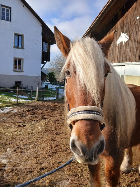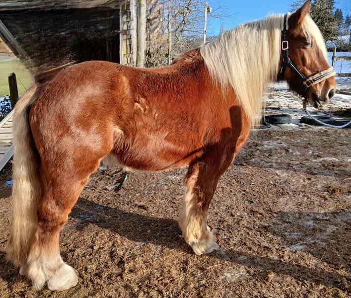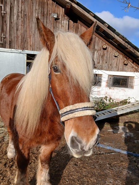 Schweren Herzens suchen wir ein schönes, liebevolles und ruhiges Zuhause auf dem Land für unser Herzenspferd. Ein superlieber, hübscher Trait Comtois Wallach mit dichter Mähne, flauschigem Winter- und glänzendem Sommerfell. Ein stämmiges Kerlchen mit sensiblem Kern, eher gemütlich unterwegs. Englisch freizeitmässig geritten. Barhuf, Hufschuhe sind vorhanden. Stockmass ca. 160 cm, ca. 740 kg. Als wir den Trait Comtois Wallach vor fünf Jahren übernommen haben, wurde bei ihm eine Atemwegsinfektion und eine einseitige Kehlkopflähmung diagnostiziert. Er wurde bei uns kuriert, seither ist er gesund und lebensfroh. Er gibt seine ganze Dankbarkeit und Liebe dafür ♥️. Die Kehlkopflähmung macht sich nur bei starker Überbelastung durch etwas schwerere Atmung bemerkbar. Ansonsten ist er nicht beeinträchtigt. Er trabt und galoppiert sehr gern, nur braucht er halt auch Pausen in gemütlicherem Schritt. Vorsorglich hatten wir das Heu eine Zeit lang bedampft - die Pferde bekamen dadurch aber Kotwasser und weniger Nährstoffe über das Heu, worauf wir das sein liessen. Der Comtois Wallach hat mit nicht bedampftem Heu überhaupt kein Problem. Er ist wie rund 80% aller Pferde EHV-Träger. Bei ruhigem, freundlichem Umgang und Gesellschaft besteht kein Anlass für einen Ausbruch, und er wird noch geimpft. Für den tollen Wallach suchen wir einen erfahrenen, lieben Menschen mit bestimmtem, aber ruhigem und feinem Umgang. Laute, hektische Menschen würden nicht zu ihm passen. Er ist kein Anfängerpferd und ist dankbar für erfahrene, feine Hände und Hilfen. Unsere Pferde kennen ausschliesslich den Offenstall in ruhiger, ländlicher, sonniger Umgebung mit 24 Stunden riesigem Auslauf, Weidegang so oft wie möglich und Rückzugsmöglichkeiten in weichem Einstreu. Wir wünschen uns für den Comtois Wallach ein ähnliches Zuhause, in ruhiger, freundlicher Pferde-Gesellschaft. Boxenhaltung kommt für ihn gar nicht in Frage. Er hat einen Pass, wird regelmässig gegen Influenza und WNV geimpft, die Zähne werden gemacht, er wird selektiv entwurmt, und auch der Hufpfleger kommt regelmässig. Zubehör zum Reiten, für Training und Spass sowie für die Pflege ist vorhanden. Wir können dem Schatz leider nicht mehr so gerecht werden, wie er es verdient. Wir freuen uns auf Ihren Kontakt, wenn Sie unserem lieben Wallach ein schönes Zuhause geben möchten und können. Wir geben ihn nicht ins Ausland.