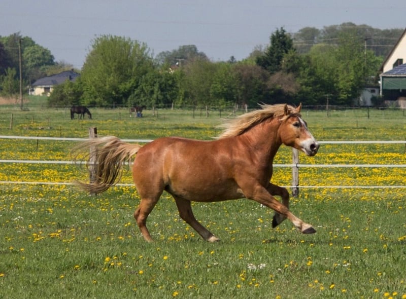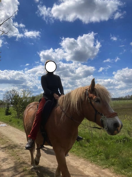 Lionheart is an 11-year-old Haflinger-Coldblood gelding (born 2014, height: 1.63 m). I purchased him as a young five-year-old directly from his breeder. His mother is a Russian draught horse, and his father is a Haflinger. Löwi is playful, curious, enjoys movement, and is a real buddy type. He loves to engage in playful tussles with other geldings, even if it means leaving his feed bucket behind. He is very approachable and trusting towards humans, having had no negative experiences. He is being offered as a backed horse. He is familiar with saddle and rider in all three gaits both in the arena and in the field. He has a fantastic gait, especially in trot, and is very soft to sit. Unfortunately, he lacks routine, as Löwi has been ridden only very rarely. He is therefore completely unspoiled and has plenty of potential for further training. He responds very well to aids but can become insecure or headstrong if he senses that his handler cannot take the lead. Therefore, Löwi is NOT suitable for beginners or children. However, he is relatively easy to impress and discipline, and he is not malicious. In the herd, he is of middle rank but tends to be more dominant with spirited mares. He would therefore do best in a gelding herd. That said, he has also been in mixed herds without issues, as not all mares interest him. Löwi has only been kept in open stable systems with ample space. Box stall or small paddocks are not suitable for him. In winter, he has 24-hour hay; in summer, 24-hour pasture. He tolerates this well when hoof care and turnout conditions are appropriate. He is healthy, and his teeth are checked annually. No dealers or riding schools. Price: €2,500 negotiable