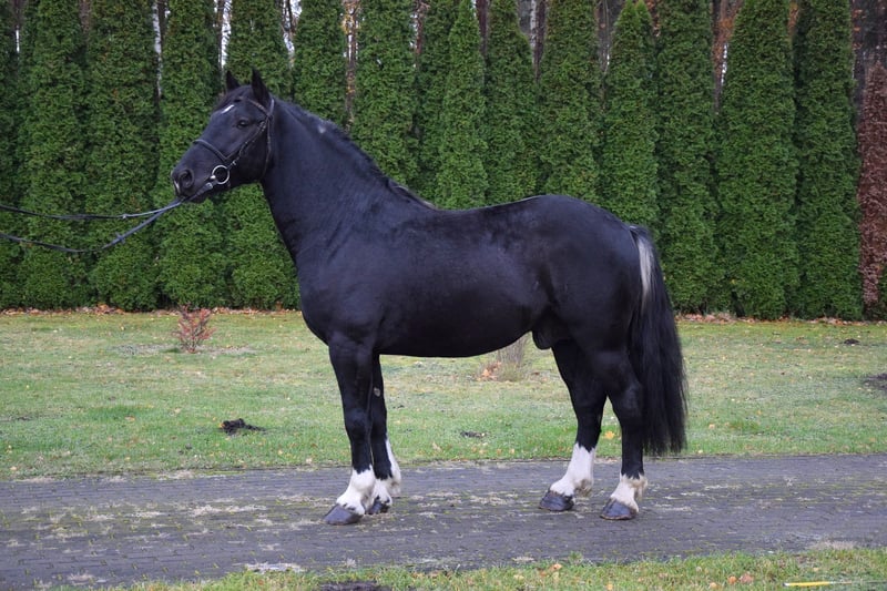 This stunning, jet-black draft horse cross (sire: draft horse, dam: warmblood) gelding was born in 2021 and currently measures 15.7 hh. He impresses with his correct conformation, elegant appearance, and especially his very sweet temperament. He is very affectionate, friendly, playful, and open-minded towards people. Despite his young age, he is already surprisingly calm and well-behaved in handling — whether at the vet or the farrier. He has been regularly dewormed, has a passport, and is familiar with various types of turnout, including box stabling with pasture turnout and herd life. He is still developing age-appropriately but has already been ridden playfully and with patience. Under saddle, he is eager to learn, attentive, and versatile. Grot is very comfortable and easy to sit. He learns quickly and is focused on work. He is also easy to load and farrier-friendly. More information available via WhatsApp: +48 784 738 028 Location: 86-200 Chelmno, Poland — a more affordable option possible. Additional pictures and video can be found on our website: http://horseforsalepoland.weebly.com/grot.html