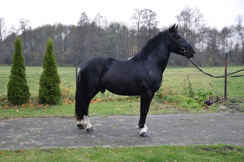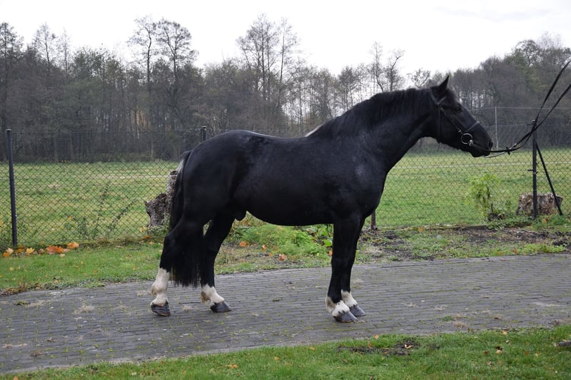 This stunning, jet-black draft horse cross (sire: draft horse, dam: warmblood) gelding was born in 2021 and currently measures 15.7 hh. He impresses with his correct conformation, elegant appearance, and especially his very sweet temperament. He is very affectionate, friendly, playful, and open-minded towards people. Despite his young age, he is already surprisingly calm and well-behaved in handling — whether at the vet or the farrier. He has been regularly dewormed, has a passport, and is familiar with various types of turnout, including box stabling with pasture turnout and herd life. He is still developing age-appropriately but has already been ridden playfully and with patience. Under saddle, he is eager to learn, attentive, and versatile. Grot is very comfortable and easy to sit. He learns quickly and is focused on work. He is also easy to load and farrier-friendly. More information available via WhatsApp: +48 784 738 028 Location: 86-200 Chelmno, Poland — a more affordable option possible. Additional pictures and video can be found on our website: http://horseforsalepoland.weebly.com/grot.html