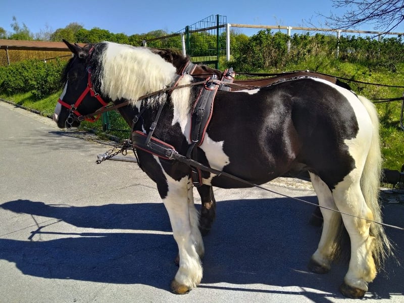 Mozart – Poney de trait froid, hongre, tache noire et blanche, 4 ans, actuellement 1,62 m au garrot, cheval de trait froid de qualité exceptionnelle avec un caractère remarquable, parfaitement monté et en loisir, très beau marquage, fondation absolument correcte, très bon pas, ferré partout, régulièrement vacciné et vermifugé. Notre Mozart est un cheval très spécial, sûr de lui et fiable en route, respectueux du ferrage et du chargement, totalement facile à manipuler, en parfaite condition d’entretien et de nourriture. €6000,00 Tél : 0171/3132074