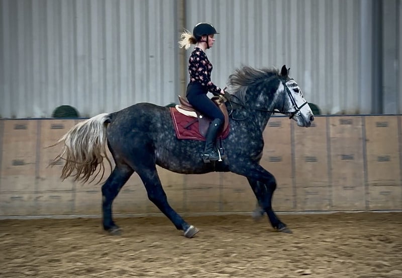 Nome: Paul Razza: Misto di cavallo da tiro pesante Sesso: Stallone Data di nascita: 11/01/2021 Età: 4 anni Altezza al garrese: 1,55 m Colore: Grigio-blu Ascendenza: non nota Carattere: socievole, desideroso di imparare, attento, intelligente, coraggioso Addestramento/Idoneità: montato, uso ricreativo Esperienza in campagna: impavido, resistente ai nervi, sia da solo che in gruppo Salute: sverminato, vaccinato, zoccoli naturali, privo di eczema, controllato dai dentisti, trattato osteopaticamente Allevamento: box, paddock Caratteristiche speciali: abituato alla ferratura e al carico, cavallo da campagna, cavallo da escursioni Le caratteristiche sopra riportate si basano sulla nostra personale valutazione e non costituiscono garanzia di caratteristiche specifiche. Prezzo: 6.500 € (prezzo netto) Le abbiamo suscitato interesse? Per offrirle un’idea più completa di Paul, saremo lieti di inviarle il suo video di monta. Siamo naturalmente disponibili per una descrizione dettagliata del cavallo, consulenza personalizzata e per rispondere a tutte le sue domande anche telefonicamente. Può contattarci in qualsiasi momento tramite WhatsApp o chiamare al numero: +49 15119487595 Orari telefonici: tutti i giorni dalle 7:00 alle 13:30 e dalle 20:00 in poi. Attendiamo con piacere il suo contatto! Un controllo clinico o radiologico pre-acquisto può essere effettuato dal veterinario di sua scelta. Naturalmente, Paul può essere consegnato in modo sicuro e confortevole nella sua nuova casa. Ci occupiamo di tutte le preparazioni necessarie e del trasporto, affinché il suo nuovo cavallo arrivi senza stress, ben curato, assicurato e in buona salute. Attualmente proponiamo una selezione accurata di cavalli in vendita. Da noi troverà sicuramente il suo cavallo da sogno. Visiti il nostro sito web: www.marvinsroyalhorses.de Gentili clienti, saremo felici di presentarvi i nostri cavalli e di consentirvi di fare prova di monta, spazzolatura, sella, longe, lavoro a terra e prova di monta in maneggio, all’aperto o in campagna, per conoscere meglio il vostro nuovo compagno. La prova di monta ha un costo di 40 €, ogni ulteriore 30 € e sarà rimborsata in caso di acquisto. Il nostro indirizzo è: Ferdinand Grube 50 53577 Neustadt Wied Google Maps: marvinsroyalhorses