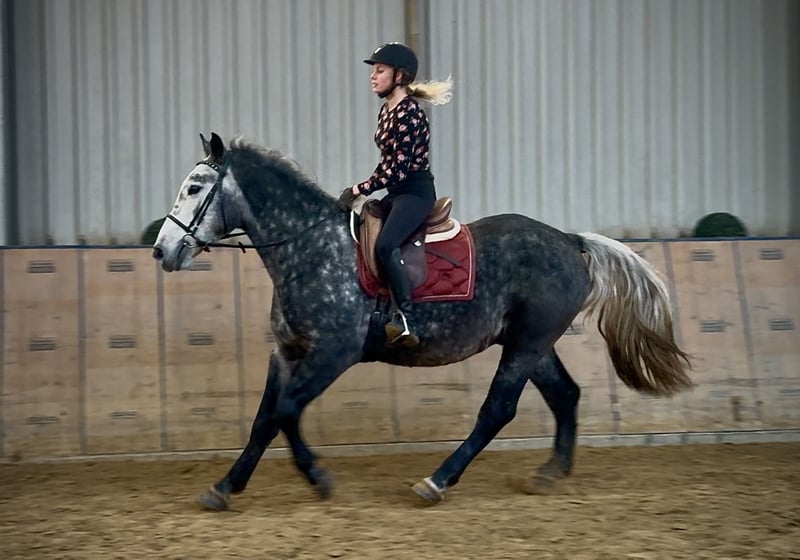 Name: Paul Breed: Coldblood Cross Gender: Gelding Date of Birth: January 11, 2021 Age: 4 years Height: 15.5 hh Color: Blue Roan Pedigree: Unknown Character: Friendly and people-oriented, eager to learn, attentive, intelligent, brave Training/Suitability:ridden, leisure riding Trail Experience: fearless, steady nerves, comfortable riding alone or in groups Health: dewormed, vaccinated, barefoot, eczema-free, teeth checked, osteopathically treated Stabling: box stall, open stable Special Features: farrier and loading-friendly, suitable for trail riding, endurance riding horse The listed qualities are based on our personal assessment and do not constitute guaranteed traits. Price: €6,500 (gross price) Have we piqued your interest? To give you a better impression of Paul, we are happy to send you his riding video. Of course, we are also available for a detailed description of the horse, personal consultation, and to answer any questions you may have via phone. Please feel free to send us a WhatsApp message at any time or call us at: +49 151 19487595 Our calling hours are daily from 7:00 AM to 1:30 PM and again from 8:00 PM. We look forward to hearing from you! A clinical or radiological pre-purchase examination can be arranged with your veterinarian. Paul can be delivered safely and comfortably to his new home. We take care of all preparations and transportation so that your new horse arrives stress-free, well cared for, insured, and in good health. Currently, we offer a carefully selected range of horses for sale. With us, you are sure to find your dream horse. Feel free to visit our website at: www.marvinsroyalhorses.de Dear customers, we are happy to introduce you to our horses and offer grooming, tacking, lunging, groundwork, and trial riding in the riding hall, on the arena, or in the field, so you can get to know your new family member better. This service costs €40 per horse, with each additional horse €30, and will be refunded upon purchase. Our address: Ferdinand Street 50 53577 Neustadt-Wied Google Maps: marvinsroyalhorses