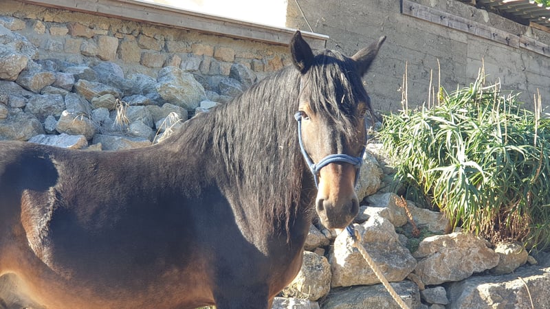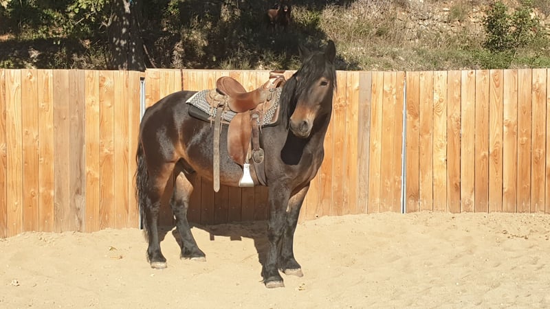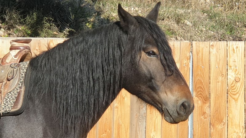 Joiah, een 6-jarige Castillonnais ruin, hengst, 1,55 m, vol liefde. Zeer mooi model. Gemakkelijk in de dagelijkse omgang, gaat goed samen met andere paarden. Dicht bij de mens. Bekapt op 3-jarige leeftijd en daarna opnieuw onder het zadel bij ons. Hij heeft de afgelopen 3 jaar van een leven in de kudde buiten genoten om zijn groei af te ronden. Hij is een goede leerling die zijn best doet. Nog groen, dus niet geschikt voor beginners. Hij heeft een ervaren ruiter nodig om verder in de juiste richting te blijven werken.