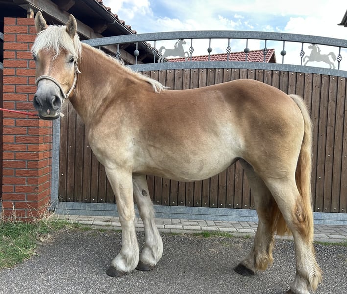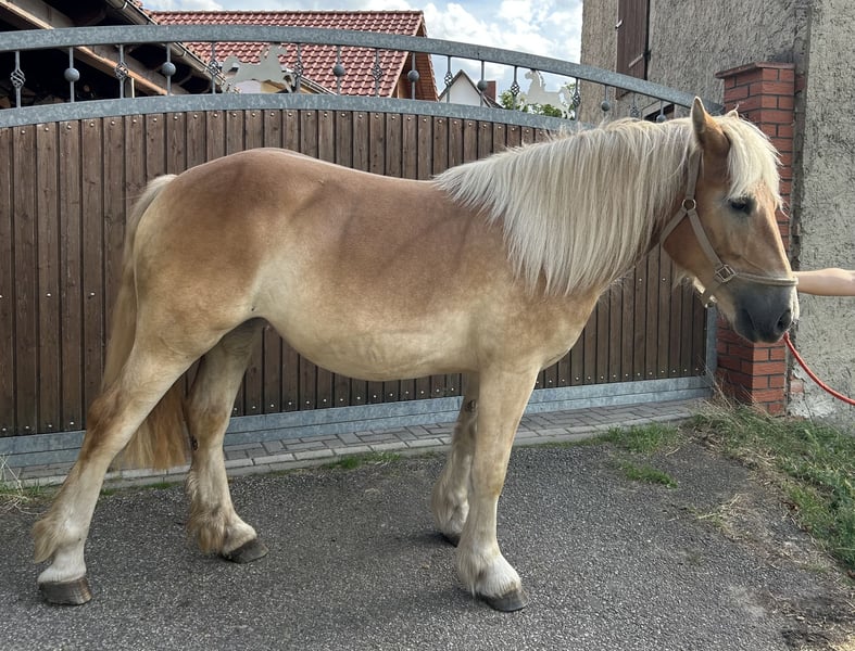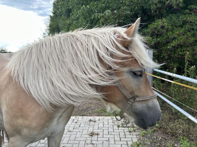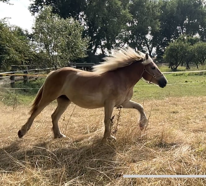 Miri sucht ein schönes neues Zuhause. Sie ist 2,5 Jahre alt (April 2023), etwa 1,51 groß und von eher schwerem Typ. Vater Kaltblut, Mutter Kleinpferdmix. Lässt sich führen und bleibt angebunden brav stehen. Kennt putzen, lässt sich überall anfassen, gibt die Hufe und hat bei warmem Wetter schon die ein oder andere Wasserschlauchdusche ausprobiert. Der Schmied kann problemlos mit der Flex bei ihr arbeiten und hat auch ihre Hufqualität gelobt. Wir haben sie von Anfang an verschiedenen Reizen ausgesetzt. Wedelnde Jacken, Regenschirm, Topfdeckelklappern, Traktoren, Autos, Kinderwagen und locker aufgelegte Fahrgeschirre und Sättel (und allerlei Weiteres) haben sie nicht aus der Ruhe gebracht. Wenn sie sich erschreckt, ist sie eher der Typ der zwei Schritte beiseite geht und dann erstmal schaut. Trotzdem ist sie keine Trantüte und zeigt auf dem Platz bei freiem Laufen lassen, dass sie sich gern bewegt. Daher kann man sie sich gut als zukünftiges Freizeit-, Wanderreit- oder Kutschpferd vorstellen. Ihre Mutter ging auch vor der Kursche und war da vom Charakter ähnlich. Nicht aus der Ruhe zu bringen aber angenehm vorwärts gehend. Bei uns steht sie nachts in der Box und tagsüber auf der Weide, kennt also beides. Dadurch, dass sie jeden Morgen und Abend rein und raus gebracht wird, hat sie guten Menschenbezug, begrüßt einen wiehernd und wenn es abends rein geht, ist sie die erste die kommt. Sie ist regelmäßig entwurmt und vollständig geimpft (inkl. Herpes, West Nil Virus und Tollwut). Zähne waren im Frühjahr unauffällig. Bei weiteren Fragen oder für ein Kennenlernen, kontaktieren Sie uns gern. Es handelt sich nicht um einen Notverkauf. Uns ist wichtig, dass ihr neues Zuhause gut für sie ist und alles passt. Wir geben sie außerdem nicht an Händler ab.