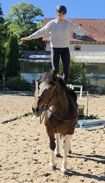 Unsere Annabell sucht ein neues Zuhause! Mit ihrer tollen Ausstrahlung und ihrer sympathischen Art schließt man sie sofort ins Herz– ein ideales Freizeitpferd für tolle Ausritte und mehr. Sie hat hier viele Freunde gefunden, aber ihre Ausbildungszeit bei uns neigt sich dem Ende zu und so muss sie uns leider bald verlassen. Bei uns wird Annabell regelmäßig dressurmäßig oder ins Gelände geritten. Sie zeigt sich dabei angenehm fleißig, lernwillig und gut zu sitzen. Trotz ihres Kalibers bringt sie eine gewisse Sportlichkeit mit, die das Reiten mit ihr besonders angenehm macht. Sie hat ansprechende Bewegungen, reagiert recht fein auf Hilfen und macht sowohl im Gelände als auch auf dem Platz eine gute Figur. Sogar kleine Sprünge meistert sie geschickt und gern. Sie wurde hier auch bereits von weniger geübten Reitern geritten und hat sich dabei sehr brav gezeigt . Bei weiterer Förderung könnte sie sicher auch an kleineren Turnieren teilnehmen. Bei ihrem Züchter wurde Annabell auch schon 2 spännig gefahren. Sie kennt Offenstall- und Boxenhaltung, ist brav im Umgang, schmiede- und verladefromm und läuft barhuf Wenn Sie eine treue, kräftige, aber angenehm zu reitenden Freizeitpartnerin mit für einen Kaltblüter solider Grundausbildung suchen, freuen wir uns auf Ihre Nachricht! Video: https://youtu.be/KREMiNHrfiQ?si=7IayWPbLvnyVPZCw 8j Kaltblut, Stute, 1.60m, Klinische Aku vorhanden „Noch mehr Fotos, Videos und kleine Einblicke in den Alltag unserer Pferde gibt’s auf Instagram: [maresi_lange]. Schauen Sie gern vorbei und lernen Sie unsere Vierbeiner schon vorab ein bisschen kennen. You can find more photos, videos and little insights into the everyday life of our horses on Instagram: [maresi_lange]. Feel free to take a look and get to know our horses a bit better in advance.“ Die Beschreibung des Pferdes beruht auf subjektiven Eindrücken und Erfahrungen unsererseits und ist keine Beschaffenheitsvereinbarung und Zusicherung von Eigenschaften. Probereiten erfolgt auf eigene Gefahr. Für das Vorstellen/ Probereiten des Pferdes erlauben wir uns eine Aufwandsentschädigung in Höhe von 30 Euro zu berechnen. Diese wird natürlich bei Kauf des Pferdes verrechnet.