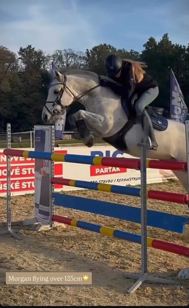 Morgan ist ein zehnjähriges Springpony mit einer höhen Erfolgsbilanz auf den Turnieren. Er war dieses Jahr fast immer fehlerfrei und hat viele wertvollen Platzierungen ergattert – ist regionaler Meister geworden und auf der tschechischen Meisterschaft war seine Mannschaft dritte im Finale. Ein richtiges Erfolgspony, das gewöhnt ist auch ins Gelände zu gehen und dressurmäßig schön zu reiten ist. Bocken, Steigen oder schreckhaft sein kennt er überhaupt nicht. Natürlich ist er auch brav im Umgang und unkompliziert beim Verladen, Tierarzt, Hufschmied etc. Es gibt aktuelle sehr gute Röntgenbilder. Nur wegen Umstieg aufs Großpferd steht er schweres Herzens zum Verkauf. Mehrere interessanten Pferde in den anderen Anzeigen. Falls Sie etwas Anderes suchen, sprechen Sie uns gerne an. Brauchen Sie sich von unseren Arbeit überzeugen? Kommen Sie an unsere Facebookseite vorbei, wo auch Bewertungen von unseren Auslandskunden sind.