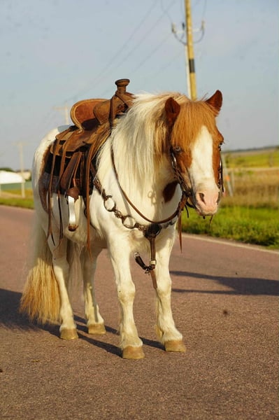 🐴 𝒕𝒉𝒆 𝐅𝐀𝐋𝐋 ℙ𝕆ℕ𝕐 𝑺𝒑𝒆𝒄𝒕𝒂𝒄𝒖𝒍𝒂𝒓🐴 Happening now thru MONDAY | SEPTEMBER 29th - Available EXCLUSIVELY on Ponybid's website! For more details and to register visit: www.Ponybid.com CONSIGNOR CONTACT: Pam Petersen 605-838-7124 LOCATION: Corsica, SD BREED: Pony REGISTERED: No COLOR: Paint HEIGHT: 40" AGE: 12 GENDER: Gelding Dilly Bar is an absolutely adorable 40 inch 12 year old, paint pony gelding. He's incredibly gentle, making him perfect for tiny kids or those just starting out. His calm nature makes him an excellent lead line pony, giving young riders the confidence they need. He's also great for trail riding, happily following behind bigger horses, no bad habits and super sweet and kind, he is super friendly loves treats, great to load and unload good ground manners, he is really a dream to have around.