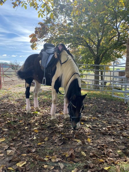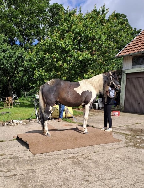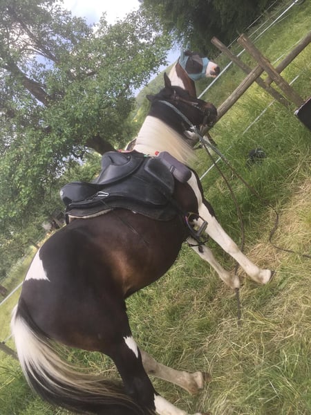 Ich suche ein neues Zuhause für meinen Wallach Yoshi, der seit 2016 in meinem Besitz ist. Er ist neugierig, interessiert und lernbegierig, verspielt und für jeden Quatsch zu haben. Bei konsequenter Arbeit macht er viel Freude. Alleine ins Gelände gehen ist für ihn kein Problem, dabei zeigt er sich neugierig und lauffreudig. Yoshi ist kein Anfängerpony und braucht jemanden mit klarer Hand und Spaß an der Arbeit mit Pferden. Aus zeitlichen und gesundheitlichen Gründen meinerseits war er zuletzt nicht im Training und muss wieder aufgebaut werden. Ich wünsche mir für ihn ein Zuhause, in dem er wieder regelmäßig gearbeitet und gefördert wird. Er ist gesund und robust, war bisher nie ernsthaft krank und lief bei mir als Barhufer oder mit Hufschuhen. Aktuell steht er in einem Offenstall und ist im Sommer ganztägig auf der Weide Kurzinfos: • Wallach, 15 Jahre • ca. 143 cm Stockmaß • Rappschecke • Rasse unbekannt, englische Papiere vorhanden • Freizeit- / westernmäßig geritten Bei ernsthaftem Interesse gerne melden und vorbeikommen zum Kennenlernen