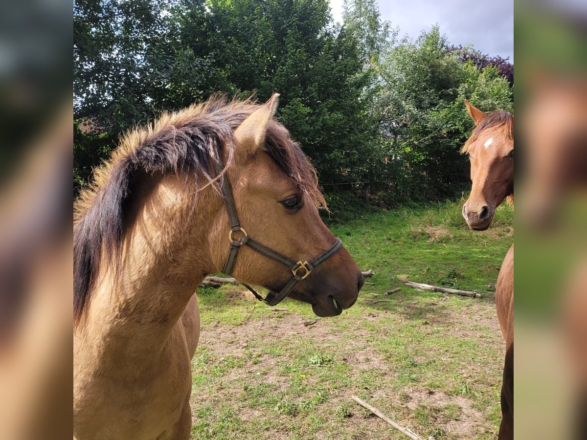 Calli ist als Deutscher Falbe eingetragen. Durch seine Ausstrahlung und sein schönes Gesicht fällt er sofort in jeder Herde auf. Sein Vater Champ de Lux ist Elitehengst, der Calli auch die voraussichtliche Pony-Endmaßgröße sowie den Arbeitseifer mitgegeben hat. Calli ist ausgesprochen freundlich und von klein auf an unkompliziert beim Führen, Verladen und der Hufpflege. Wir trennen uns als Altersgründen nur sehr schwer von unserem Kumpel und wünschen uns für ihn neue Besitzer, die Erfahrung mit Einreiten haben und ein zuverlässiges, angstfreies großes Pony suchen.