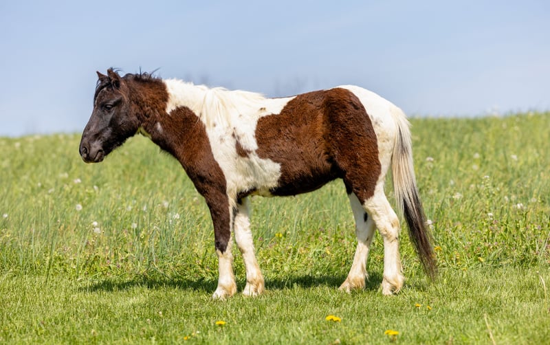 Pony castrado de 4 años, de 42 pulgadas, en blanco y negro