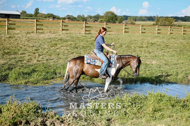 🍁𝒕𝒉𝒆 𝐅𝐀𝐋𝐋 𝑺𝒑𝒆𝒄𝒕𝒂𝒄𝒖𝒍𝒂𝒓🍁 Happening now thru MONDAY | SEPTEMBER 22nd - Available EXCLUSIVELY on HorseBid's website! For more details and to register visit: www.Horsebid.com CONSIGNOR CONTACT: Masters Equine 330-464-9758 LOCATION: Orrville, OH BREED: Quarter X Paint Pony REGISTERED: No COLOR: Paint HEIGHT: 14 AGE: 4 GENDER: Gelding Watch Video! Bubba is the kind of gelding that craves attention and loves to be around people. What I like most about him is his go-with-the-flow type of personality. He’s been arena ridden, has checked fence, and has plenty of outside miles under his belt. Versatile as they come, this classy-looking Paint gelding aims to please. With his size, disposition, and training, he would also make an excellent step-up pony for a youth rider ready to move on from a smaller mount. He does all of the obstacles- the teeter totter bridge, cowboy curtain, whips, tarps, gunfire, and flags are old news to Bubba. He has the brain of a horse twice his age and is very receptive to what is asked of him. Bubba is responsive to your leg and seat cues, with a fun turn around and a deep stop off your seat. While filming his video, we even took him over some small jumps for the very first time, and he handled them willingly and with ease. With his solid foundation and willing attitude, he could also be a great candidate for the english market. Bubba is a joy to have in the barn. He has been in both a stall environment and turned out on pasture with no bad habits. He is the perfect size for a rider with bad knees, as he is easy to get on and off, but stocky enough to carry almost any size rider comfortably. Pictures don’t do this cute gelding justice. He has good foot and bone, giving him the opportunity to have a long, successful career. He has been exposed to it all- farm machinery, equipment, road traffic, gunfire, deer, cattle- you name it. Bubba is sound and up to date on teeth, vaccines, coggins, and health papers. Since stepping foot on our property, he has been nothing short of a pleasure to work with. No matter what direction you want to go, this phenomenal gelding will be sure to take you there. He has all the buttons: side pass, turn around, leg yield, but can just as easily point and go. Gentle, flashy, and broke, with unlimited potential!