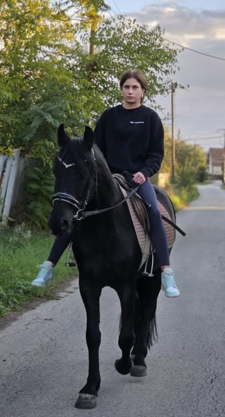 In vendita un fantastico e dolcissimo castrone trottatore! Alegro ha 4 anni, misura 146 cm ed è di un nero lucido da sogno: con una criniera folta e una coda spessa! È stato montato per il tempo libero, sia in paddock che in passeggiata in campagna, ed è estremamente gentile e beneducato. È stato anche trainato in carrozza singola e doppia, dimostrando di essere assolutamente sicuro in strada e nel traffico. Per ulteriori informazioni, foto e video, non esitate a contattarmi direttamente su WhatsApp.