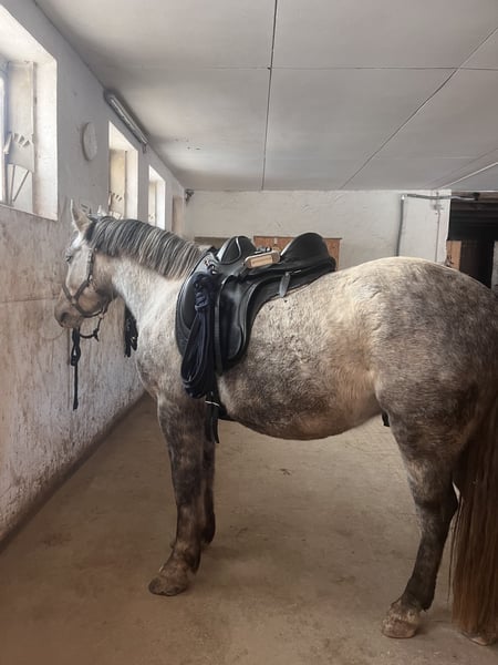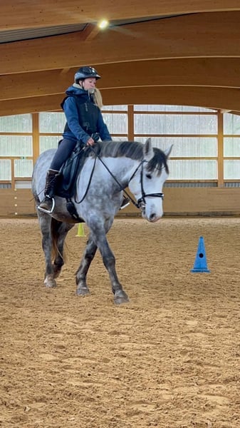 Dino ist 2021 geboren und seit einem Jahr unter dem Sattel. Wir haben uns gemeinsam viel erarbeitet, denn noch vor sechs Monaten war vieles nicht möglich, was ein Pferd eigentlich können sollte – dazu gehörten unter anderem Putzen, Hufe geben, Longieren und routiniertes Reiten. Er ist ein relativ dominanter Wallach, der den persönlichen Raum noch nicht vollständig akzeptiert und eine geringe Frustrationstoleranz hat. Er testet häufig Grenzen und braucht jemanden, der sehr klar ist. Jemanden mit Erfahrung im Jungpferdebereich, der ihn als seine Aufgabe sieht und ihm den Rahmen gibt, den er braucht. Am besten wäre ein reiner Wallach-Offenstall mit einem guten Herdenchef oder einer großen Herde. Wenn er seiner festen Bezugsperson vertraut, ist er ein wirklich toller Trainingspartner: super motiviert, lauffreudig und unerschrocken. Er liebt Ausritte, geht in allen GGA und ist sehr gut über die Stimme regulierbar. Außerdem ist er sehr menschenbezogen, lernwillig und macht sich in der Freiarbeit sehr toll. Zudem hat er ein gutes Grundfundament und ist stabil& funktionsfähig gebaut. Zähne sind frisch gemacht. Platz vor Preis Keine Anfänger Keine Händler Kein Schulbetrieb