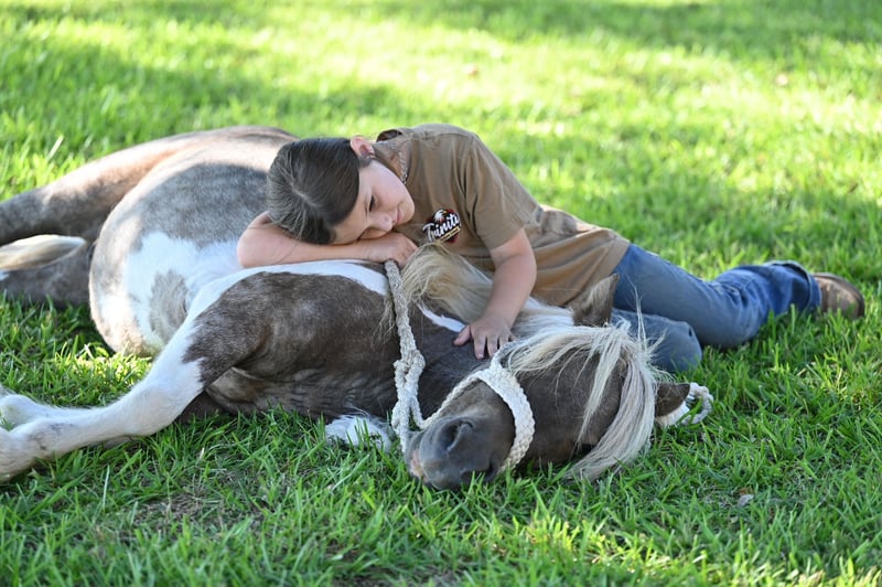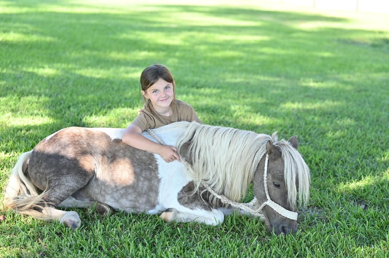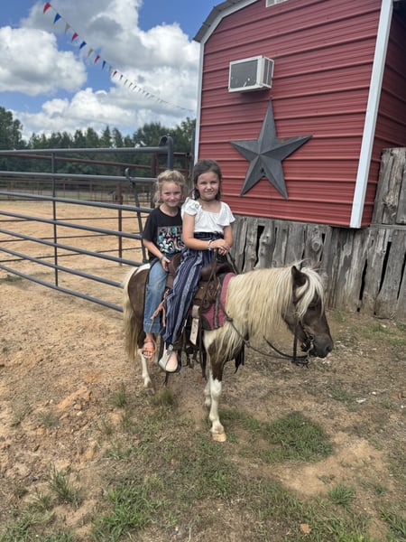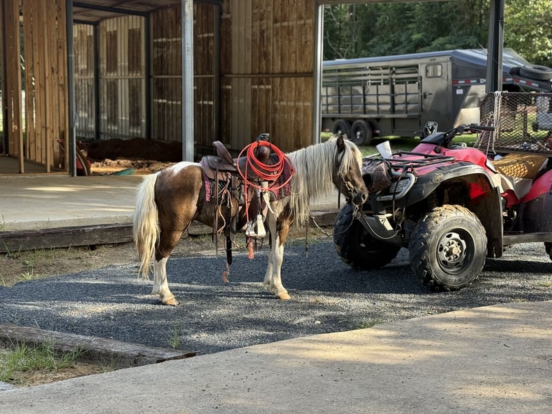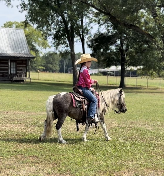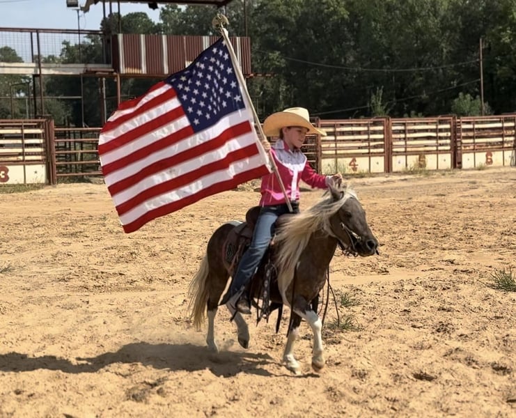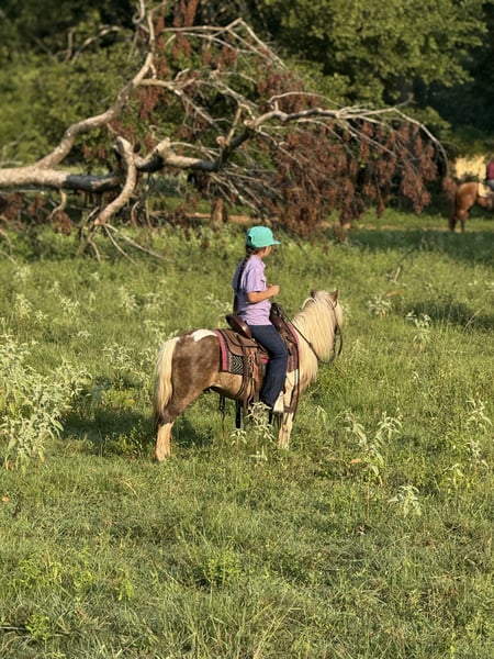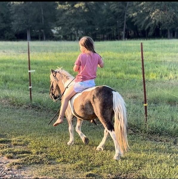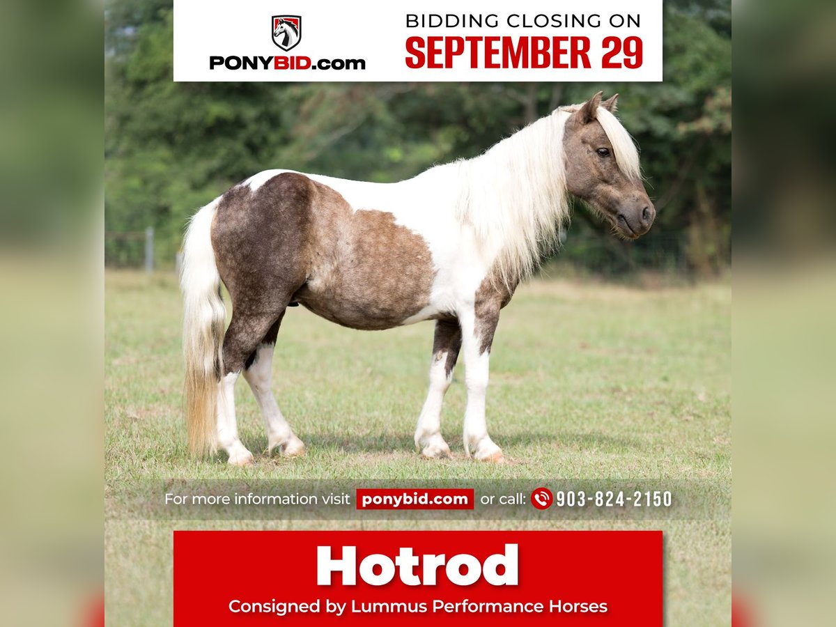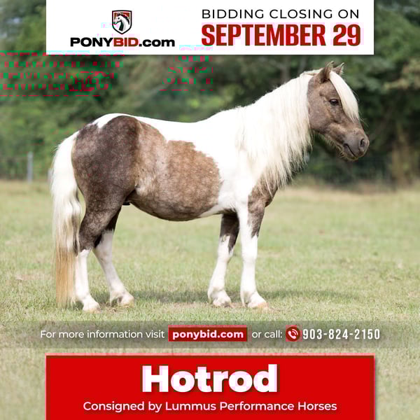 🐴 𝒕𝒉𝒆 𝐅𝐀𝐋𝐋 ℙ𝕆ℕ𝕐 𝑺𝒑𝒆𝒄𝒕𝒂𝒄𝒖𝒍𝒂𝒓🐴 Happening now thru MONDAY | SEPTEMBER 29th - Available EXCLUSIVELY on Ponybid's website! For more details and to register visit: www.Ponybid.com CONSIGNOR CONTACT: Lummus Performance Horses 903-824-2150 LOCATION: Bloomburg, TX BREED: Miniature Horse REGISTERED: No COLOR: Paint HEIGHT: 38” AGE: 5 GENDER: Gelding Where do I even start with a great BABYSITTING UNICORN gelding like this one! Hotrod has been part of our family for along time now and has baby sat so many kids, we are saddened by this decision but the girls have decided to let another little kid enjoy him. Hotrod is a 5 yr old beautiful 38” chocolate palomino paint gelding with a beautiful thick mane and tail and my my would you look at those dapples! He has manners and rides around like a big horse, he’s as broke as broke gets and I would trust him with any kid, I trust my kids to ride him anywhere, including BRIDLE-LESS! Absolutely NO kick or buck in him! He has been more miles and seen more country than most people! When I say he’s been there and done that I mean it, he knows what a hard days work is outside in the country and will last all day. His video says it all!! He is one handed broke, neck reins, and has a good stop! My kids have done every bit of training on him, he has always been willing to go or do anything they have asked. He will ease thru the creeks/ponds, thickets, traffic safe, train safe, machinery safe, loud noises don’t bother him. He’s been to ropings, barrel races, jumping jumps, rodeos, spent many of long days working cows, dragging calves, hog hunting, swimming ponds, tied out camping, and been thru every aspect of the woods from thickets to boggy creeks, and trail riding down the roads. Trains honking and going by don’t bother him, he will ride right next to it. He even rides ENGLISH! My kids love jumping him even BRIDLE-LESS. We carry multiple buckets of feed strapped over his back to help carry to feed. Hotrod has also been used to carry the American flag for the National Anthem at rodeos. He is BOMBPROOF, absolutely no spook at all and will go anywhere he is pointed, he never refuses or says no. He is a once in a lifetime time pony. Hotrod is one of those that is as honest as the day is long and is NOT your typical pony. He’s easy to catch, bathe, and hauls like a champ. He has the biggest heart and try of anything we have on the place. Both of my girls 7 and 10 catch him by themselves, saddle, bridle, and ride him everywhere with ZERO help from an adult. I trust this pony enough for little kids to run up to him from the front or back and he will stand like a rock. Hotrod will ride BRIDLELESS, you can rope either end on him team roping, pop bull whips, run barrels, run poles, goats tie, TRICK RIDE, breakaway, and trail ride! Hotrod will walk, trot, lope, or go as fast as you want in all the events! Hotrod is going really good on the breakaway dummy and has been started breakawaying live calves. He is the coolest little guy around and everywhere we go he gets ALL the attention. Hotrod leads, loads, ties, bathes, clips, and stands for the farrier. Hotrod will ground tie all day long! Wherever you get off of him he will stay there till you come back. My kids get off of him in the middle of the drive way while they go in and eat lunch, get a snack, and 30 mins to an hour later, he will still be in the same place you left him! Hotrod gets along with all our other horses, goats, dogs, cats, and steers. He’s an easy keeper and stays fat on air. I really can’t say enough good things about him. Please don’t hesitate to call, I’d love to talk to you about him! 💥Sells 100% sound! 💥UTD on farrier and deworming
