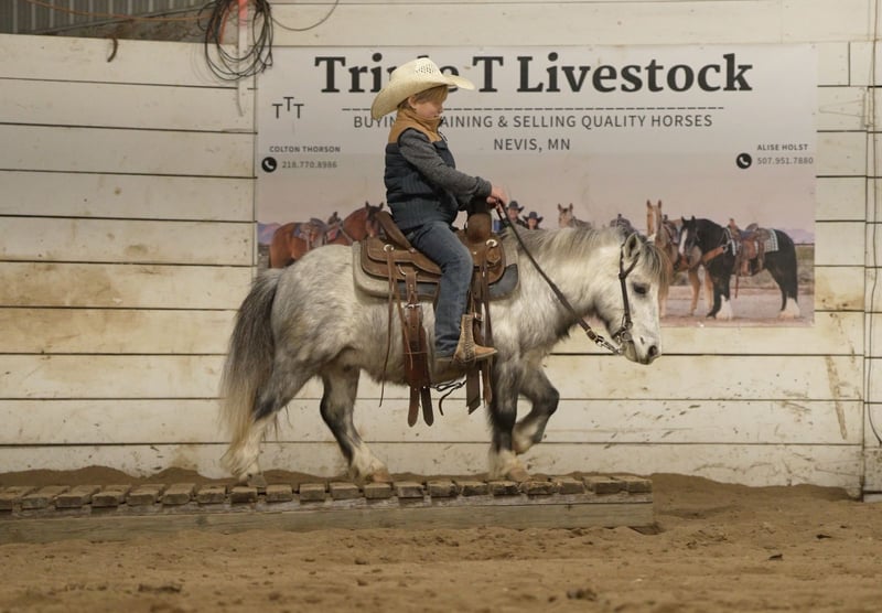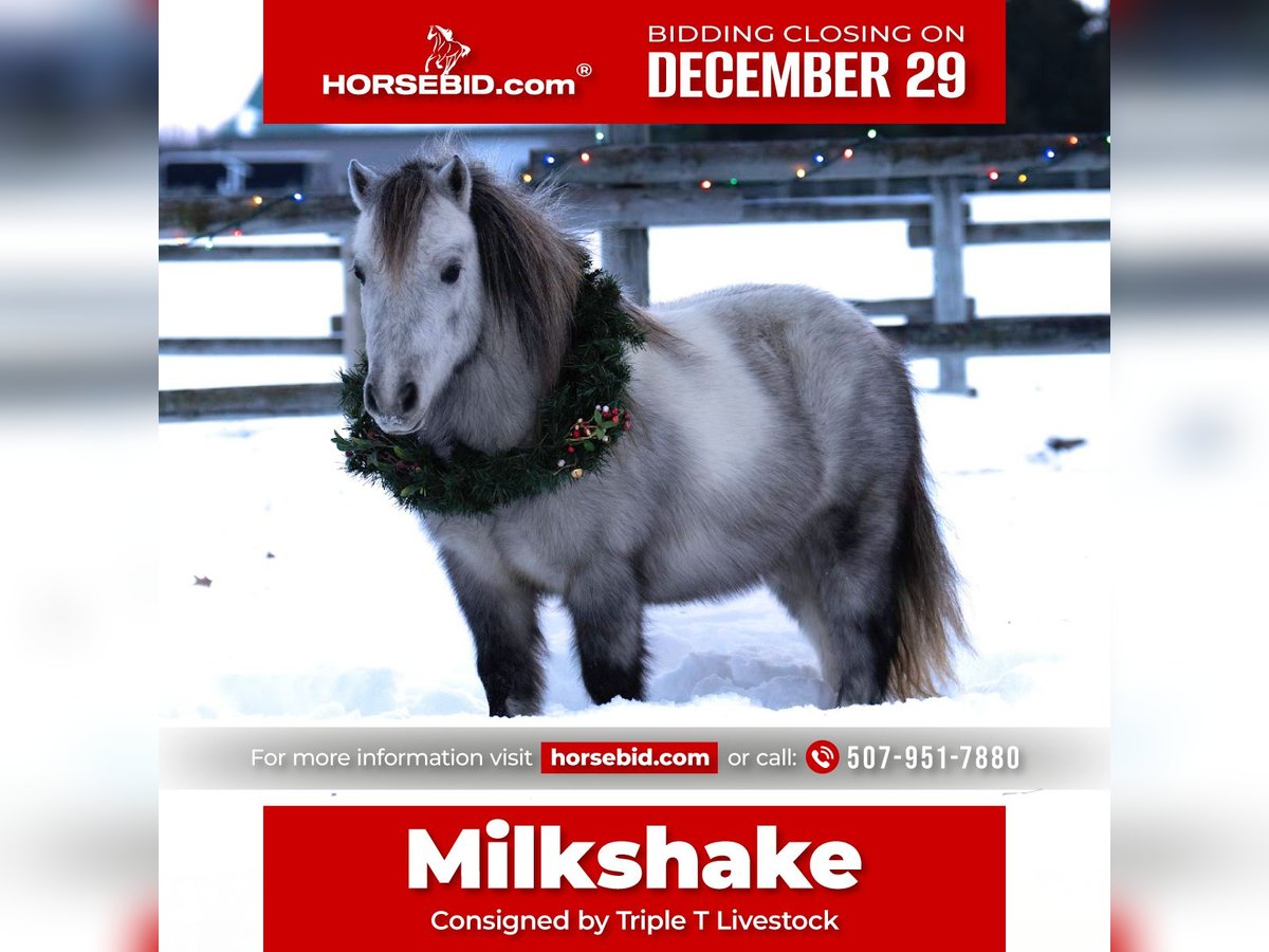 ⚜️ 𝓗𝓮𝓻𝓲𝓽𝓪𝓰𝓮 𝐖𝐢𝐧𝐭𝐞𝐫 𝓒𝓵𝓪𝓼𝓼𝓲𝓬⚜️ Happening now thru MONDAY | DECEMBER 29th - Available EXCLUSIVELY on HorseBid's website! For more details and to register visit: www.Horsebid.com CONSIGNOR CONTACT: Triple T Livestock 507-951-7880 LOCATION: Nevis, MN BREED: Pony REGISTERED: No COLOR: Gray HEIGHT: 38” AGE: 6 GENDER: Gelding Milkshake is a 6-year-old, 38-inch pony that truly earns the title Ranch Pony Deluxe. Don’t let his size fool you—Milkshake shows up every day with a big-horse work ethic and a can-do attitude. He’s been around cattle, knows his job, and confidently handles real ranch work with ease. From checking cattle to dragging anything you need pulled, this little guy is all business when it’s time to get things done. In the saddle, Milkshake is a joy to ride. He has a sweet, comfortable pony lope, steers great, and stays soft and willing at all times. He’s handy, responsive, and easy to get along with, making him a fun mount whether you’re riding in the arena or out doing chores. He’s also excellent with dogs—he doesn’t mind them running alongside or even hopping up in the saddle. Milkshake has been enjoyed by our 6-year-old nephew, who has had an absolute blast riding him. He’s gentle, yet still has plenty of try and heart for a kid who wants to be involved in real ranch life. This is the kind of pony that builds confidence, teaches responsibility, and makes memories that last a lifetime. Milkshake is also broke to drive. He drives outstanding and is very trained. He swings both ways, walks, trots and really pulls good. This pony may be small, but he has a huge heart and an even bigger willingness to please. Milkshake is the definition of handy, and fun—and maybe don’t tell him he isn’t a big horse… because we’re pretty sure he doesn’t know he’s tiny 🙂