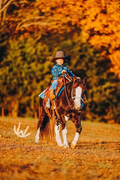 🎁 𝐈𝐍 𝐓𝐈𝐌𝐄 𝐅𝐎𝐑 𝑪𝒉𝒓𝒊𝒔𝒕𝒎𝒂𝒔 🎁 Happening now thru TUESDAY | DECEMBER 9th - Available EXCLUSIVELY on Ponybid's website! For more details and to register visit: www.Ponybid.com CONSIGNOR CONTACT: Rockin W Ponies • Double R Ranch 931-623-1706 LOCATION: Lyles TN BREED: Pony REGISTERED: No COLOR: Pinto HEIGHT: 42 AGE: 8 GENDER: Gelding Meet Hotshot, the cutest, sweetest pony! He looks just like a half sized Gunner-bred Quarter horse with his absolutely striking appearance, black and white pinto with beautiful blue eyes. He stands 42” and he’s 8 years old. Very well built, he’s thick and stout, with the cutest face! Hotshot has become a social media star with his little two year old rider, Cooper, racking up nearly 14 million views online and going viral multiple times! Families have loved watching their adventures and seeing how steady, brave, and loving Hotshot is, while Cooper learns the ropes and gets into mischief. He has a quiet, sensible mind that makes him very reliable in all sorts of settings, from the trail to casual rides around the pasture, or being led down the road. When you are a cute little pony, with a baby cowboy onboard, causing chaos and pretend shooting bad guys in the bushes, you’ve got to be extra steady and careful. Hotshot’s ground manners are excellent as well, He is easy to catch, loves being brushed and fussed over, and stands quietly all day while little people try to get his tack all sorted out. Kind hearted, gentle, and patient, he is the type of pony who makes children feel safe and proud every time they are around him- and parents thankful they can trust him! He will meet you at the gate, he’s in your pocket and always friendly. Under saddle, Hotshot shines as a trail pony and adventure partner. He has done everything from solo rides in the woods, with wildlife all around, to being ponied by a big horse, visiting grandparents down the road, moving cattle, riding in town with traffic and noise- and even coming inside our house! He crosses water, steps over logs, can lead or follow a group. Hotshot is forgiving for beginners yet confident and solid enough for kids ready to ride independently. Hotshot is parent, and Cooper, approved. There are so many bad ponies out there, it makes these rare unicorn ponies shine that much brighter, even more special! We carefully select a couple of very nice, safe ponies every year. Our boys help get them ready to offer for Christmas- and they are so proud to offer Hotshot as one of the two! He sells 100% sound with a recent clean PPE performed by Dr. John Laster DVM of Todd County Animal Clinic, included at the end of the pictures. Located in Lyles TN. Nationwide shipping available, we are happy to help arrange transport. He is welcome to stay free of charge, until Santa makes arrangements for Christmas if need be! For more information or to schedule a visit, contact Rachel Vick at 931 623 1706.