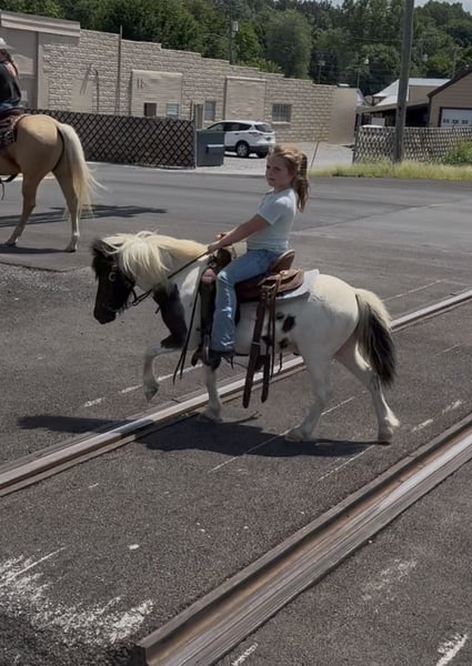🎁 𝐈𝐍 𝐓𝐈𝐌𝐄 𝐅𝐎𝐑 𝑪𝒉𝒓𝒊𝒔𝒕𝒎𝒂𝒔 🎁 Happening now thru TUESDAY | DECEMBER 9th - Available EXCLUSIVELY on Ponybid's website! For more details and to register visit: www.Ponybid.com CONSIGNOR CONTACT: Taylor Herald 270-841-3856 LOCATION: Henderson, KY BREED: Pony REGISTERED: No COLOR: Bay/white pinto HEIGHT: 39” AGE: 7 GENDER: Gelding Let us introduce you to Cowboy! Don’t let his name fool you, it doesn’t take a cowpoke to ride this handsome boy! Cowboy is a 39”, 7 year old, gorgeous pinto pony! He has that cute, eye catching color, and blue eyes that is sure to get your little one noticed anywhere they go. Cowboy has resided with us for a little over a year, and has been a sure favorite in our family. His duties as “the kids’ pony” have far exceeded our expectations. He’s been hauled all over and seen the sights. Rodeos, parades, trails, obstacles, tarps, you name it. He’s been dressed up, dressed down, painted, pulled around, sacrificed to the beginners, and he never has once complained. He’s handled the bright city lights, sirens, and chaos with grace and fortitude. Cowboy has also skillfully carried my 7 year old daughter down the trails for the last year, and has always kept her safe and sound. He’s crossed water, went over bridges, up and down hilly and rocky terrain, through town and traffic, and never missed a beat. Cowboy’s upkeep is extremely easy, making it almost effortless to own and love him. He is a pleasure to have around, stands tied, stands for baths, saddling, bridling, harnessing, etc. he is not buddy nor barn sour. Cowboy’s easy going, go with the flow demeanor makes him the perfect candidate for a little one for leadline, or learn to ride independently on a slow going mount. If you are looking to teach your next little one to be a cowboy or cowgirl without the worry of the typical pony attitude, then let’s talk about him! Let’s not forget, Cowboy also drives as well! He’s no stranger to pulling the sled around in the snow for some winter wonderland fun! Cowboy sells sound with a current recent coggins, up to date on farrier, wormings, and good teeth! Shipping is available, and we are more than happy to help with shipping arrangements. Need a place to hide him until closer to Christmas? We offer that too! Please don’t hesitate to give us a call to talk about Cowboy, we’d love to hear from you!