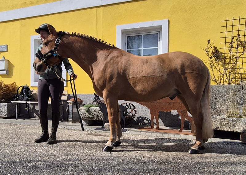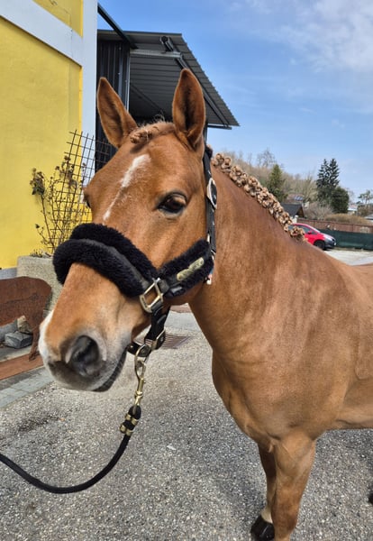 Schweren Herzens suchen wir für unseren lieben Ponywallach Cookie ein neues, passendes Zuhause. Da sein aktueller Reiter inzwischen leider zu groß für ihn geworden ist, wünschen wir uns für Cookie eine neue Familie, bei der er weiterhin gefördert und geliebt wird. Cookie ist ein 9-jähriger Wallach mit einem Stockmaß von ca. 135 cm. Er ist ein sehr braves, freundliches und unkompliziertes Pony, das sowohl Kindern als auch Erwachsenen viel Freude macht. Cookie ist für jeden Spaß zu haben und zeigt sich im täglichen Umgang stets lieb, ausgeglichen und zuverlässig. Derzeit wird Cookie von einem 10-jährigen Kind geritten, mit dem er gerade erfolgreich den Reiterpass absolviert hat. Dadurch ist er bereits an Kinder im Umgang und beim Reiten gewöhnt und macht seine Arbeit sehr brav mit. Er eignet sich daher sehr gut als Kinder- und Freizeitpony. Auch im Gelände ist Cookie ein toller Partner. Er geht sowohl alleine als auch in der Gruppe brav ausreiten und bleibt dabei ruhig und verlässlich. Außerdem kennt Cookie das Fahren mit der Kutsche und zeigt sich auch hier sehr brav und gelassen. Im Umgang mit anderen Pferden ist Cookie herdenverträglich und versteht sich gut mit seinen Artgenossen. Für Cookie wünschen wir uns ein liebevolles, verantwortungsbewusstes 5-⭐ Zuhause! Bei ernsthaftem Interesse oder Fragen freuen wir uns über eine Nachricht. 🐴