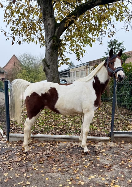 Zum Verkauf steht im Auftrag ein charmantes Endmaß-Pony, das sich durch sein freundliches Wesen und seine Vielseitigkeit auszeichnet. Es handelt sich um einen liebevollen Wallach, geboren im Jahr 2017, der sich bestens für Jugendliche oder kleine Erwachsene eignet die etwas Reiterfahrung mitbringen. Er liebt es betütert und umsorgt zu werden. Am Anfang muss er etwas Vertrauen mit einer fremden Person aufbauen bis er Vertrauen fasst. Vor Männern hat er etwas Respekt daher wäre eine weibliche neue Besitzerin bevorzugt für ihn. Er ist sehr lernwillig unter dem Reiter. Er kennt Schritt Trab Galopp auf dem Reitplatz und im Gelände sowie kleine Sprünge. Im Gelände ist er alleine etwas nervös aber jederzeit kontrollierbar. Geht man zu zweit raus orientiert er sich am Führpferd. Zuvor war er ein Jahr in einer Reitschule welches mit fortgeschrittenen Kindern gut geklappt hat allerdings für ihn nicht das richtige ist da er gerne eine feste Bezugsperson hat. Bei Interesse oder für weitere Informationen oder Videos unter dem Sattel stehe ich gerne zur Verfügung. Eine Besichtigung und Probereiten sind nach Vereinbarung möglich.