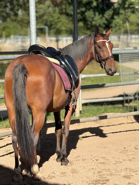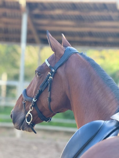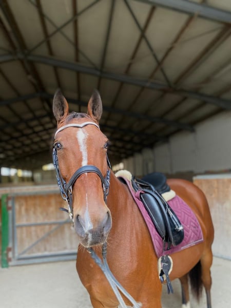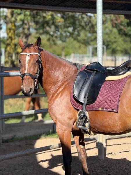 Zum Verkauf steht ein bildschöner brauner Irisch Sport Horse Mix. Benni ist 2016 geboren und hat ein Stockmaß von ca. 150cm. Er ist beim Putzen, Hufe geben Satteln und Trensen ein wahrer Schatz. Jedoch benötigt er auch hier eine erfahrene Hand, da er auch mal etwas frech werden kann und leicht knabbert. Zähne sind frisch gemacht worden, ebenso war der Hufschmied vor kurzem da. Auch hier hat er keinerlei Unarten gezeigt. Beim Reiten benötigt er jedoch eine erfahrenere Reiterin, kein Anfängerpferd. Schritt und Trab ist kein Problem, jedoch muss sein angaloppieren auf der linken Hand noch ausgebaut werden. Er ist leicht schreckhaft, jedoch zu jederzeit gut händelbar.