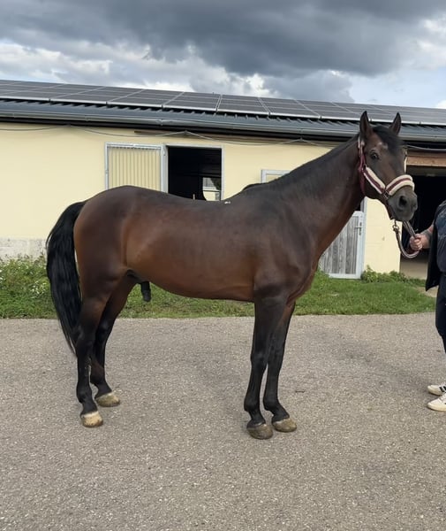 On behalf of: Valenciano is a 15-year-old Spanish charmer who brings joy every day. "Valy" stands perfectly still at the grooming area, always friendly and attentive to people. He is suitable for all types of activities: dressage work, cavaletti exercises, hacking, longeing, ground work, etc., and is always very willing and focused. He has also been driven in Spain. Additional information: - approximately 148 cm (not officially measured) - farrier- and loading-trainable - regularly vaccinated Come and meet him — fall in love! Please contact exclusively via WhatsApp: 0176/60833497 Private sale, all information provided without guarantee.