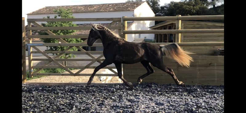 Male Noir Silver de 147 cm, né en 2022 – Parfait pour le dressage ou le spéciale. Potentiel intéressant pour les Cycles Classiques poneys. Ce jeune cheval, doté d’un excellent tempérament, a été soigneusement élevé et préparé pour le dressage. Sa robe dorée lui confère une allure élégante et distinguée, idéale pour les cavaliers recherchant un cheval de qualité pour la compétition ou l’élevage. Nayati a grandit en troupeau h24 dehors, sociale et rustique 👍🏻 N'hésitez pas à nous contacter pour plus d’informations ou pour organiser une visite.