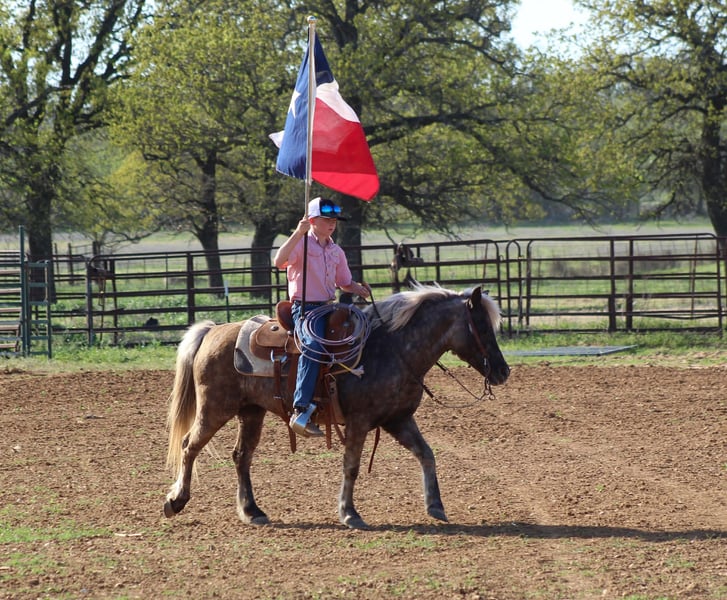 "AVAILABLE ON ONLINE HORSE AUCTION AT www DOT PlatinumEquineAuction DOT com BIDDING OPEN NOW thru SUNDAY | APRIL 12TH! *Final price will be determined on auction site* CONSIGNOR CONTACT INFO: Stephenville Cattle Co. 254-459-1046 LOCATION: Stephenville, TX Coco Puff is a 10-year-old silver dapple pony mare standing 12.1 hands tall—the perfect size for young riders to learn and grow with. If you’re looking for a safe, dependable starter pony, she checks all the boxes. She’s the kind you can begin on the leadline and confidently let the kids progress on as they gain experience. This little mare has truly done it all. She’s been used around the sale barn penning cattle and has spent plenty of time out on the ranch with our boys. Coco Puff is naturally more “whoa” than “go,” making her a great confidence builder, but she’ll step up and go when asked. She’s happy to follow along behind dad’s big horse while gathering cattle or goats, and she’s just as comfortable heading out on the trail. Coco Puff rides out alone or in a group with no issues. She’s been exposed to just about everything—flags, tarps, and all kinds of ranch activity—and handles it with ease. She’s a kind, gentle pony with excellent ground manners. She’ll cross logs, water, and rough terrain without hesitation. Coco Puff has been ridden by both confident and timid kids and takes great care of her riders. With summer right around the corner, she’s the perfect pony to keep the kids outside, learning, and making memories. Need hauling that’s no problem we can set you up with haulers world wide to get Coco Puff anywhere in the country. Call or text Chris (254) 459-1046 with questions or set up a time to come see her. Located in Stephenville, Texas.