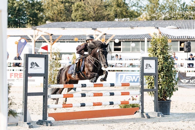 *** Inquiries are welcome via WhatsApp at 0176 24297968 *** Manjana is a beautiful and absolutely well-behaved black and white mare. She is currently placed multiple times in A* and A** show jumping with a young girl and is ideally suited for children. Top character, no vices, no illnesses. She is being sold due to the transition to a larger horse.