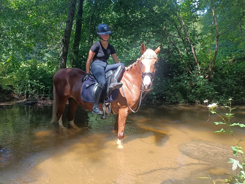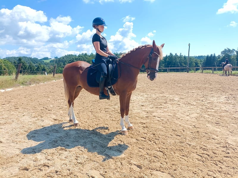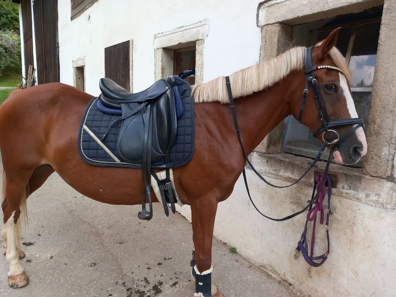 For sale is the 12-year-old Hungarian pony mare Bella. She is 147 cm tall and therefore perfect for children, but also well-suited for small adults. Bella loves going out on trails and is fearless and calm; neither water, cars, nor cyclists pose a problem for her. However, she also strives to do everything right in the riding arena. In dressage, she is at a good A level and is also capable of outside canter and the beginnings of a flying change. With an experienced rider, she has also completed an A-level course. Bella is also used to being lunged, being ridden by smaller children with side reins, or even being ridden without a saddle. She is well-behaved for the farrier and loading, does not bite, and does not kick. She is familiar with box stalls with daily turnout as well as open barn housing, very compatible in the herd, clear-headed, no bad habits, and has already had several foals.