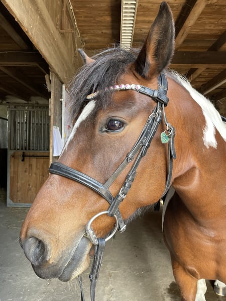 Schweren Herzen verkaufen wir wegen Umstieg auf Großpferd unsere Stute. Sie ist ein immer motivierter und zuverlässiger Freizeitpartner und liebt Kinder. Bei Führzügel, Reiterwettbewerben und E Dressuren war sie meist platziert und überträgt Ruhe und Gelassenheit auf ihren Reiter. Sie ist absolut geländesicher, mit anderen Pferden oder alleine und geht über Stock und Stein. Wir suchen optimaler Weise eine Familie mit Kind. Sie benötigt einen Hauptreiter, da sie mit ständigem Reiterwechsel nicht zurecht kommt. Gern auch ein Freizeitreiter, der lange Geländeritte mit ihr macht. Platz vor Preis, kein Schulbetrieb!
